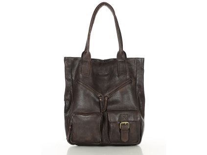 MARCO MAZZINI Tmavohnedá veľká kožená shopper kabelka