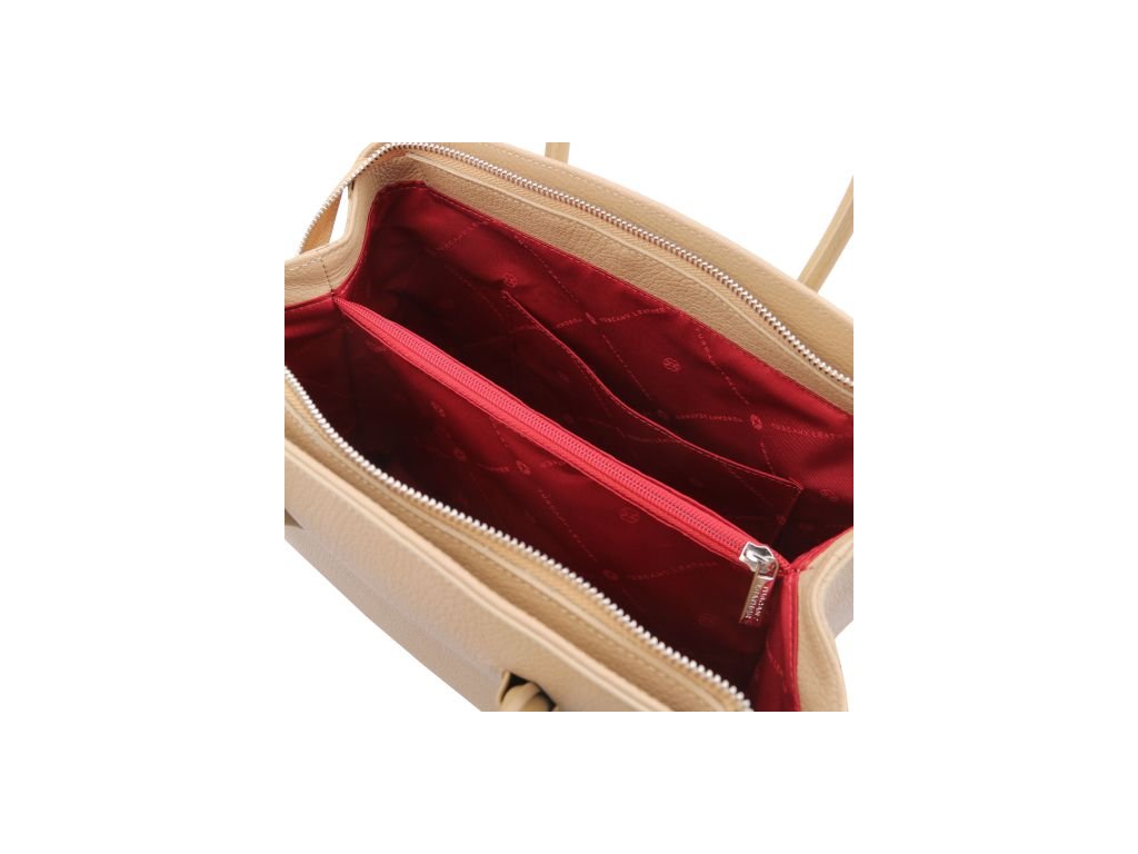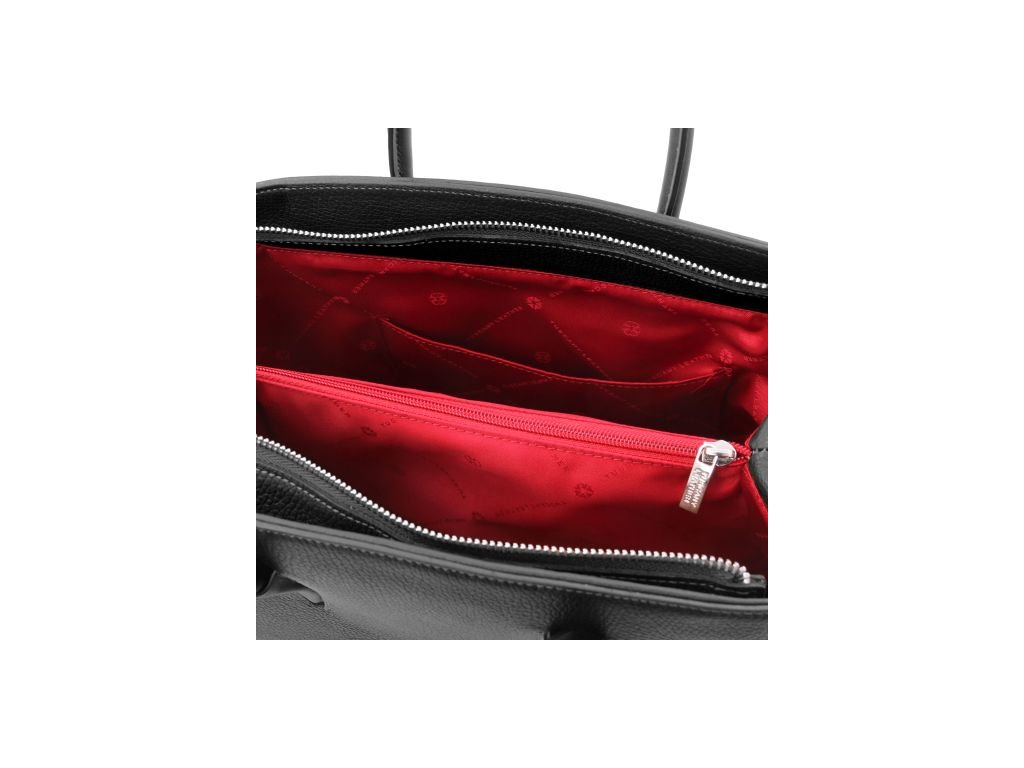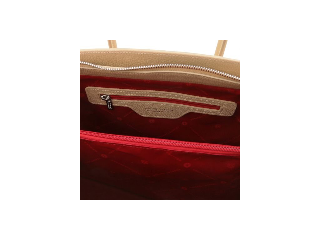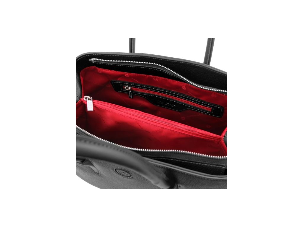 Elegantná a nadčasová kabelka vyrobená z kombinácie zrnitej a mäkkej hovädzej kože. Pevná konštrukcia a prehľadné vnútorné členenie z nej robia ideálny doplnok pre každodenné nosenie – praktická, štýlová a vyrobená z pravej talianskej kože.