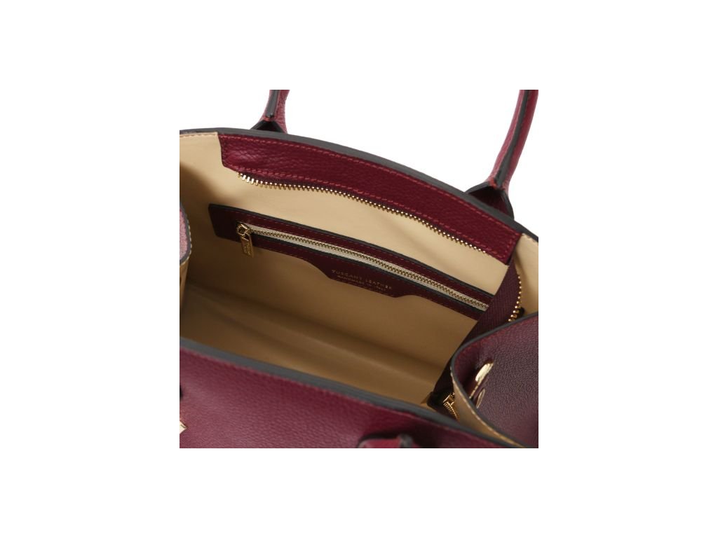 Vonkajšia časť: Zlaté logo Tuscany Leather vytlačené horúcou razbou, ochranné kovové nôžky na spodnej časti