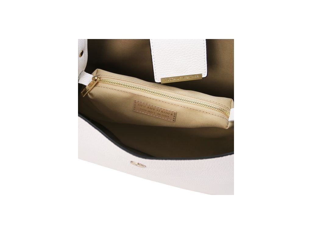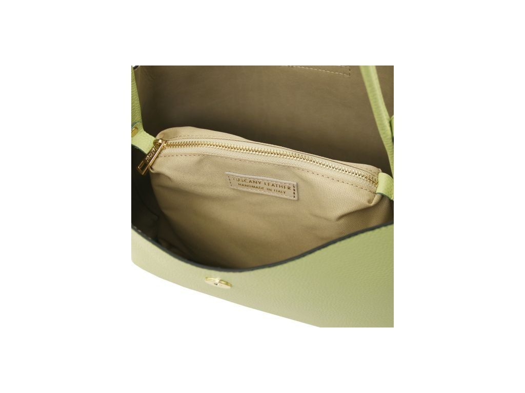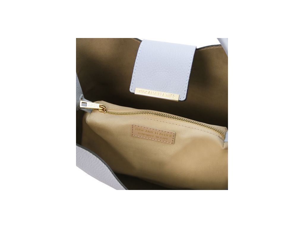 Kožená bucket kabelka Clio od Tuscany Leather spája talianske remeselné spracovanie s praktickým využitím. Je vyrobená z kvalitnej zrnitej kože a má polotuhú konštrukciu, vďaka ktorej drží tvar.