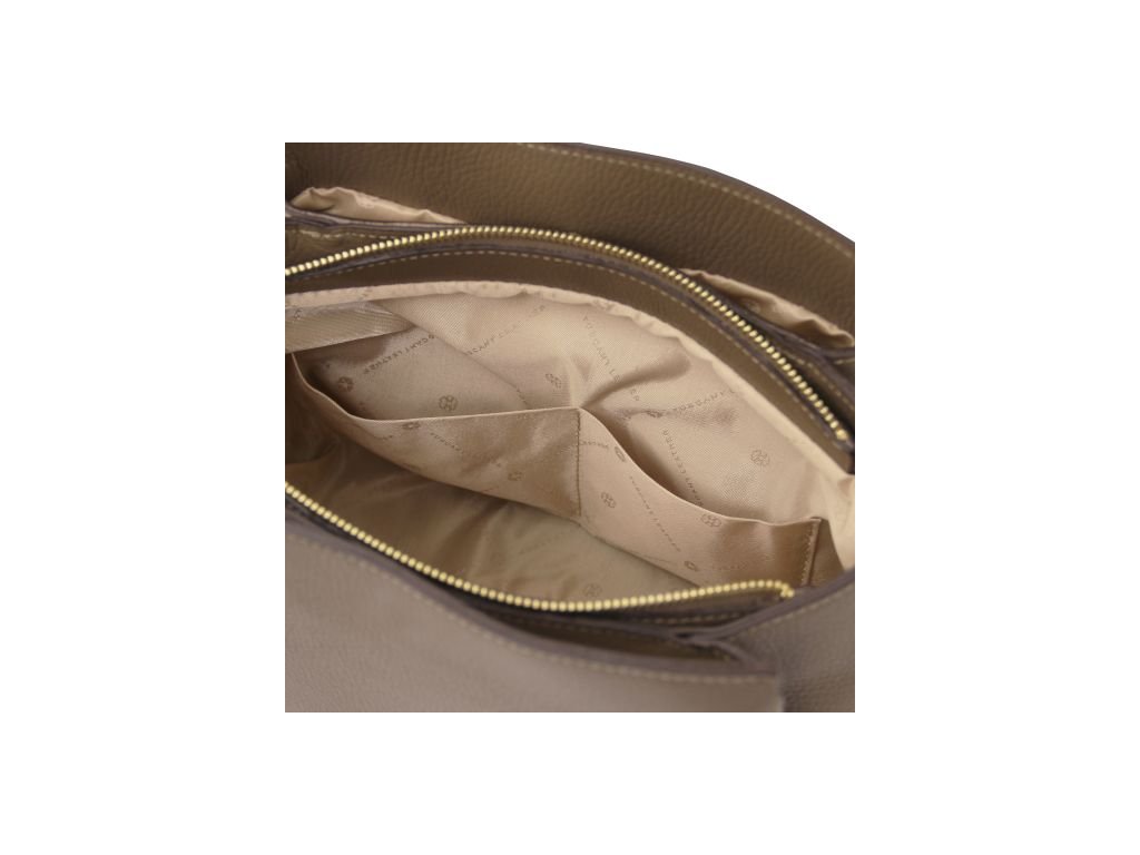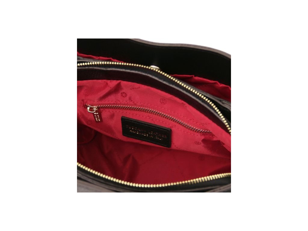 - Vonkajšia časť: Kovové logo TL, ochranné kovové nožičky na spodnej strane, 2 vrecká po bokoch so zapínaním