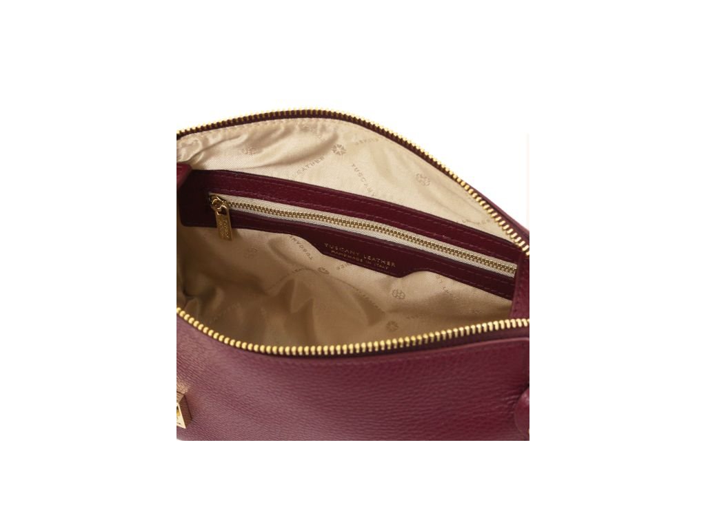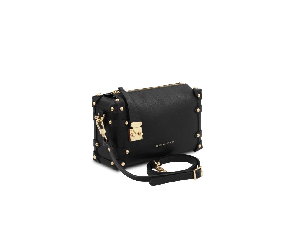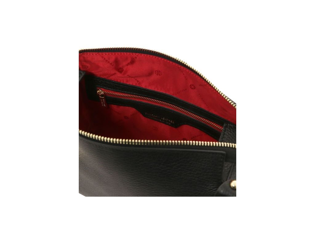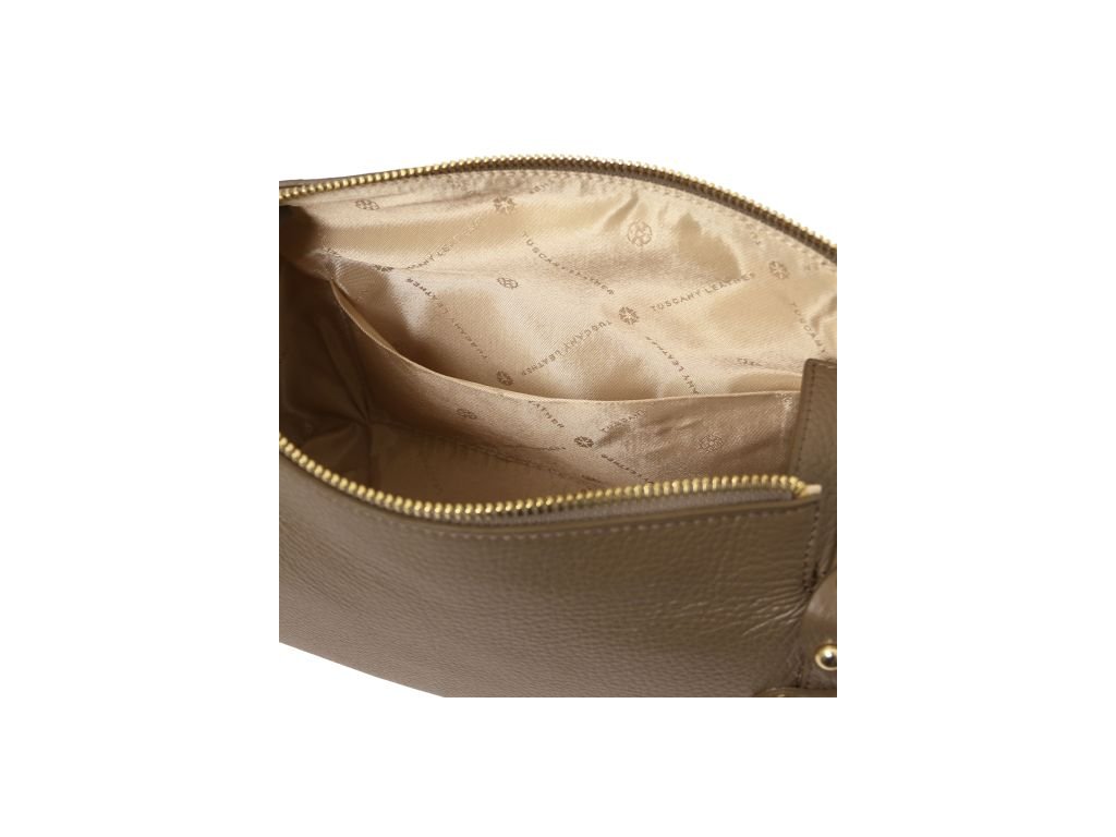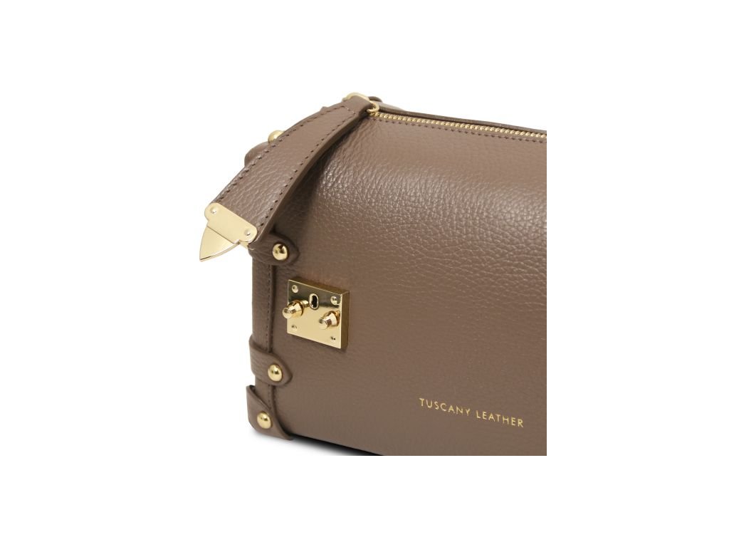 - Vonkajšia časť: Zlatá ražba s logom Tuscany Leather, ochranné kovové nožičky na spodnej strane