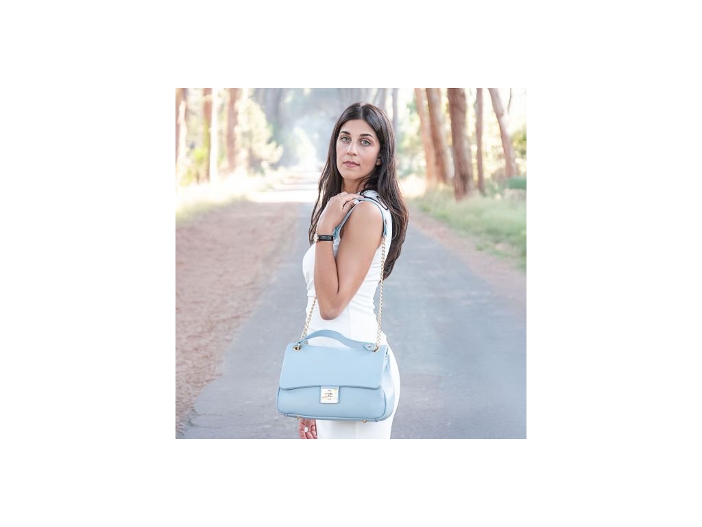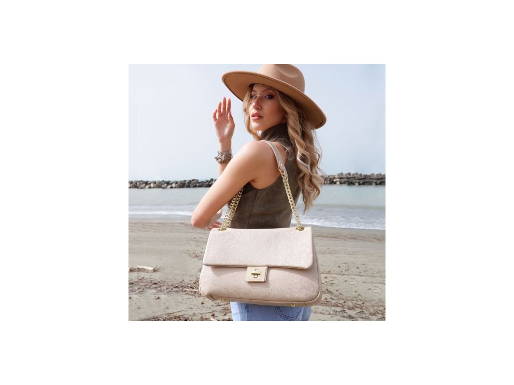 Elegantná kabelka zo zrnitej kože s jemnou štruktúrou, ktorá spája ženský štýl a praktickosť. Mäkký tvar, priestranné vnútro a výrazné kovové detaily z nej robia dokonalý doplnok na každý deň aj do mesta.