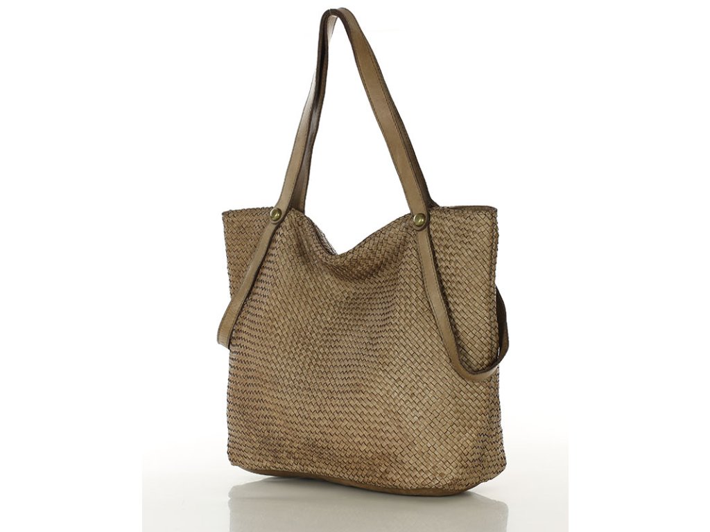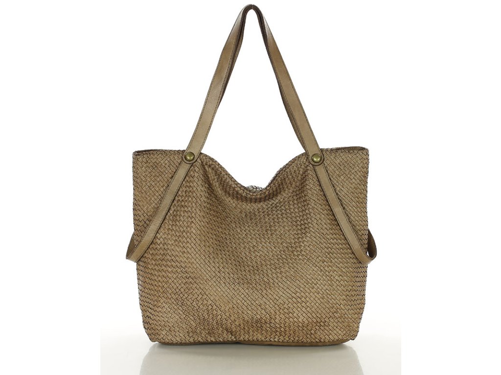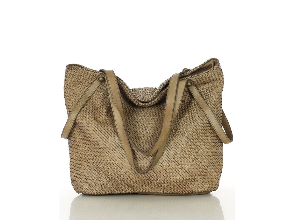MARCO MAZZINI Béžová dámska shopper kabelka z tkanej kože