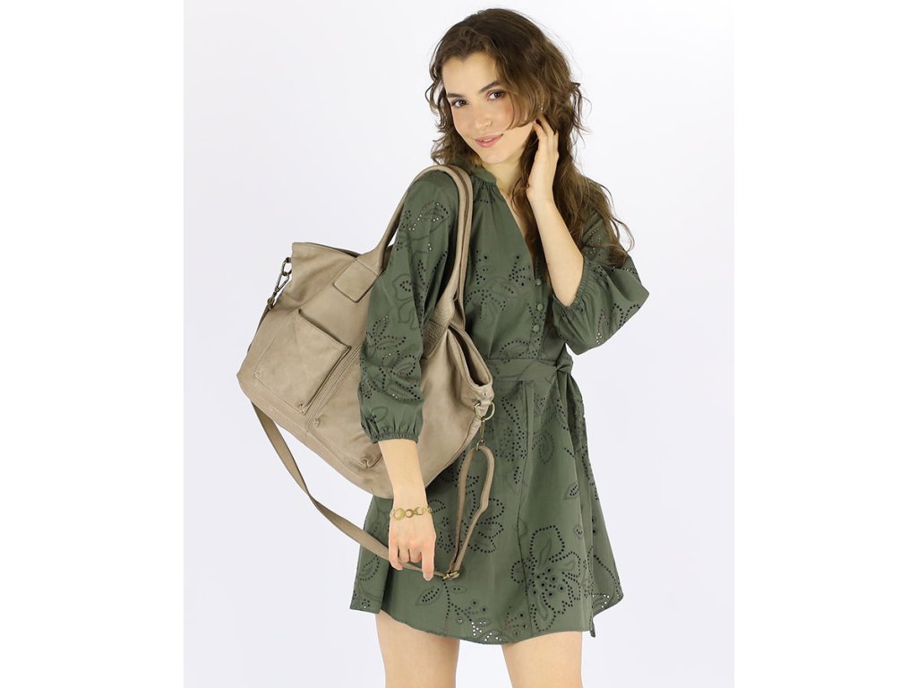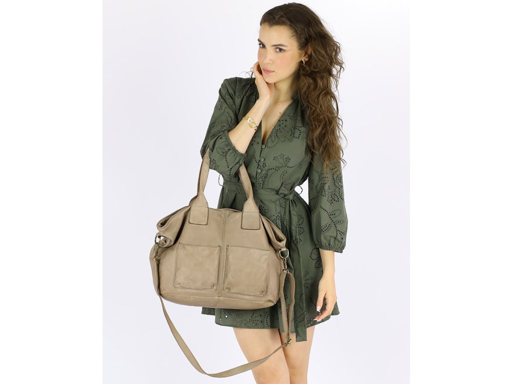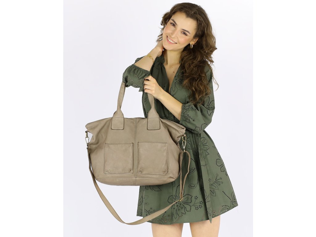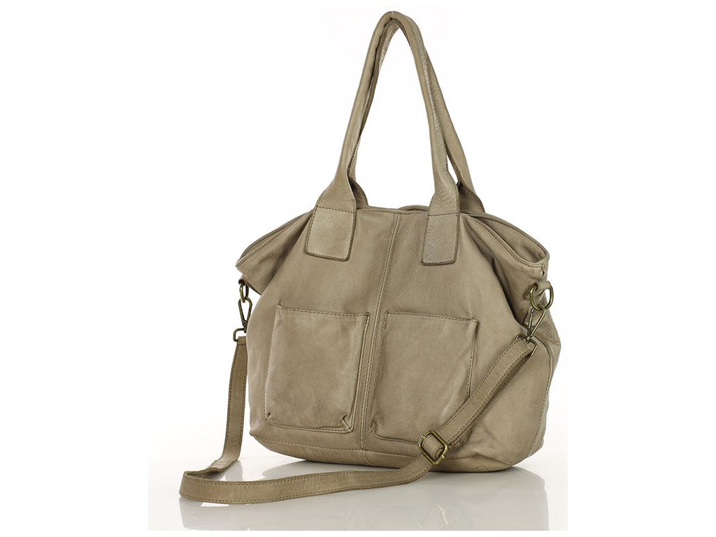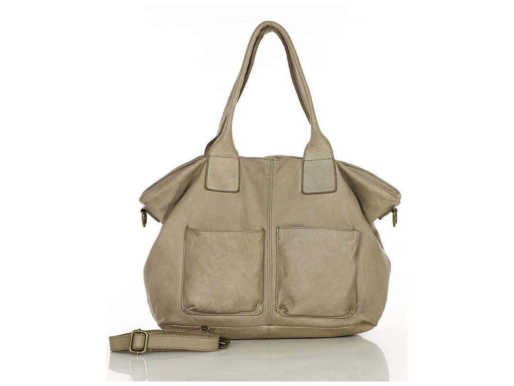 Béžová kožená kabelka – veľký shopper bag s vreckami od MARCO MAZZINI