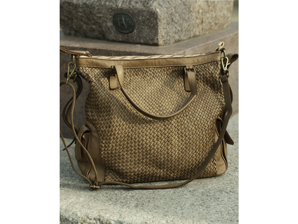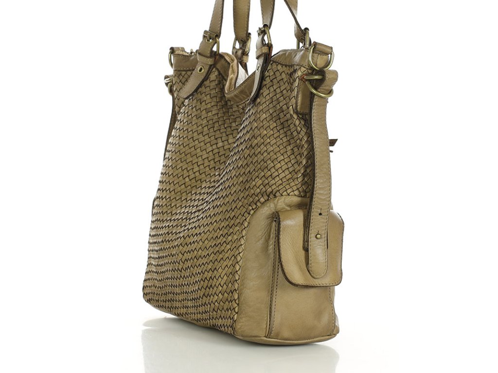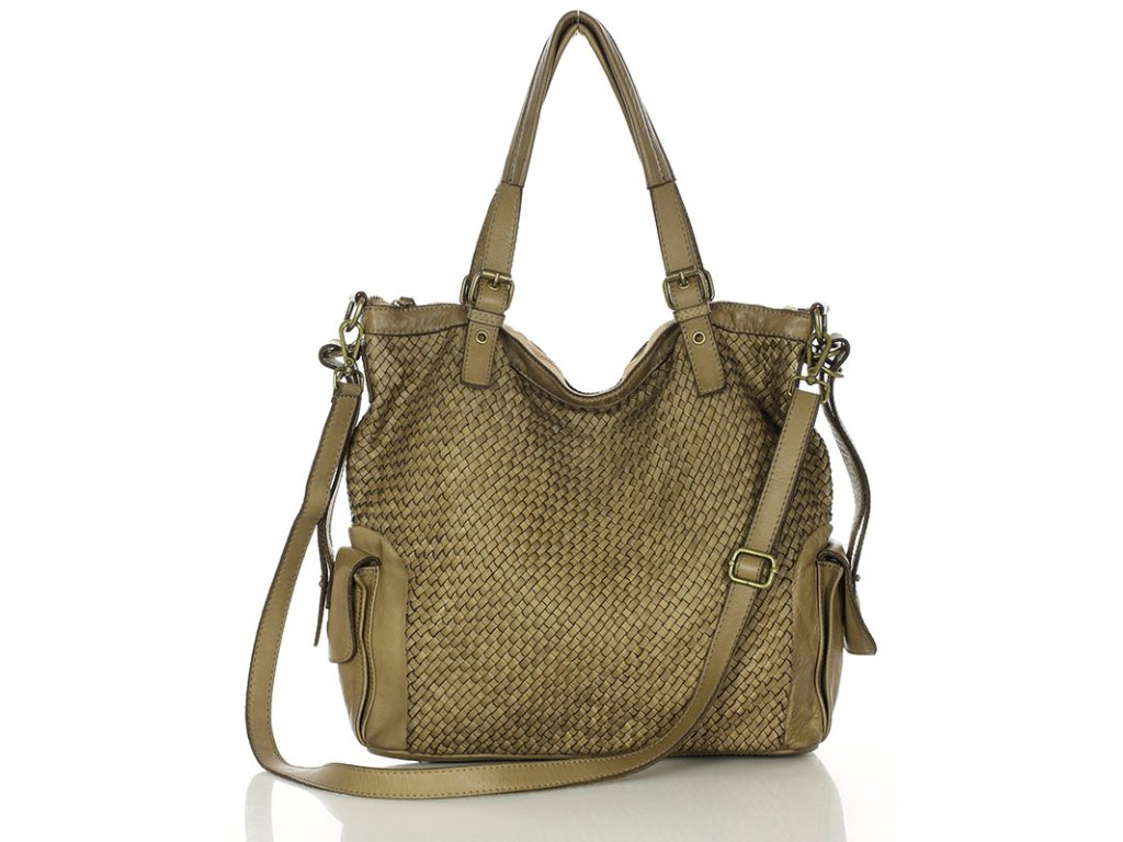 Veľká kabelka s nastaviteľnými rúčkami. Vyrobená z prírodnej kože.