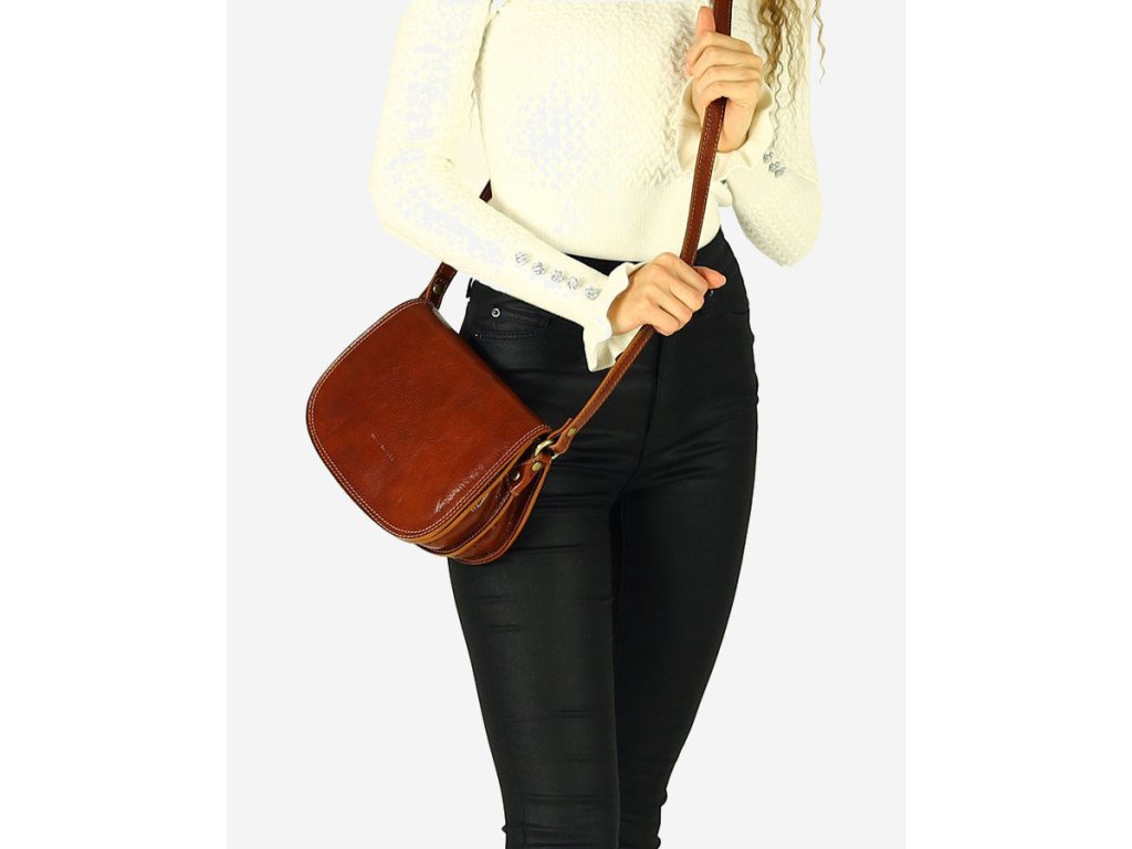 MARCO MAZZINI Camel dámska kožená crossbody kabelka Cremona