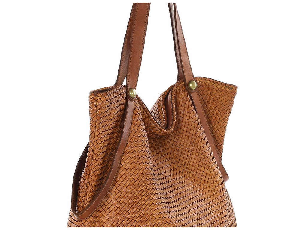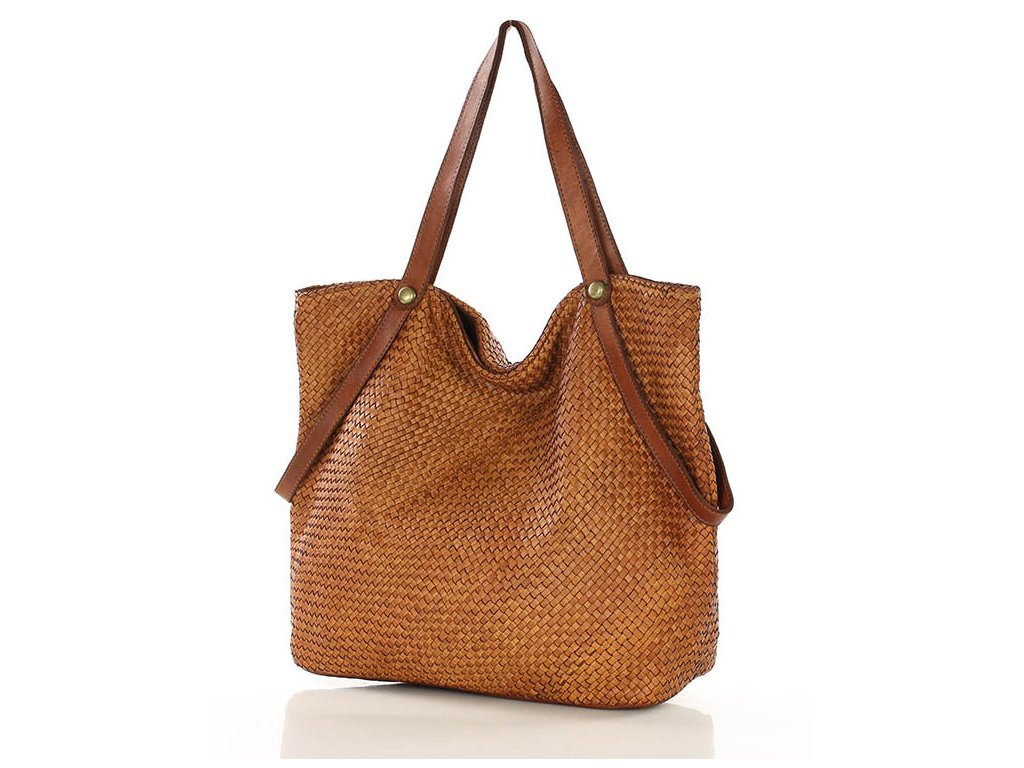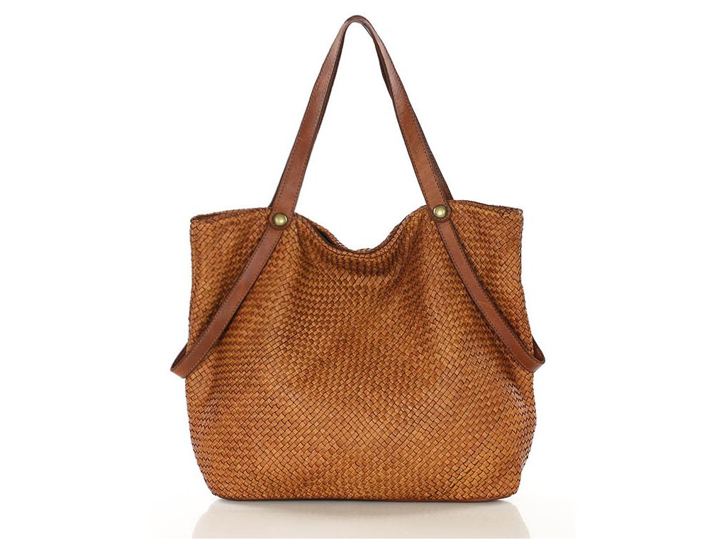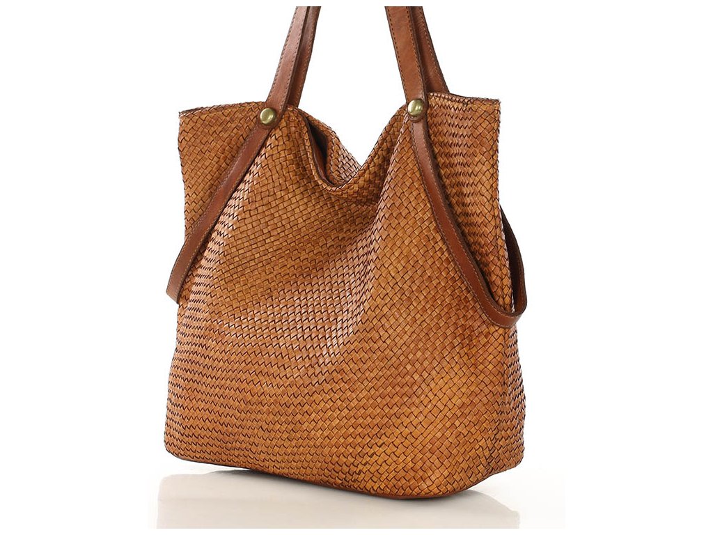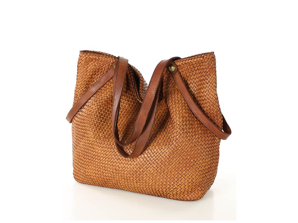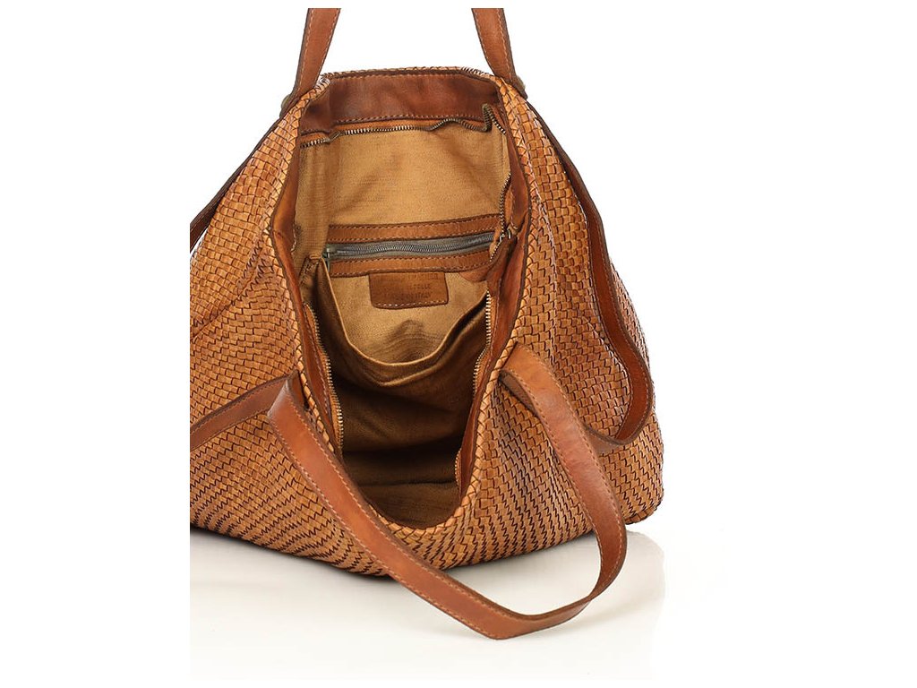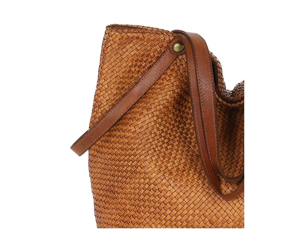 MARCO MAZZINI Camel dámska shopper kabelka z tkanej kože