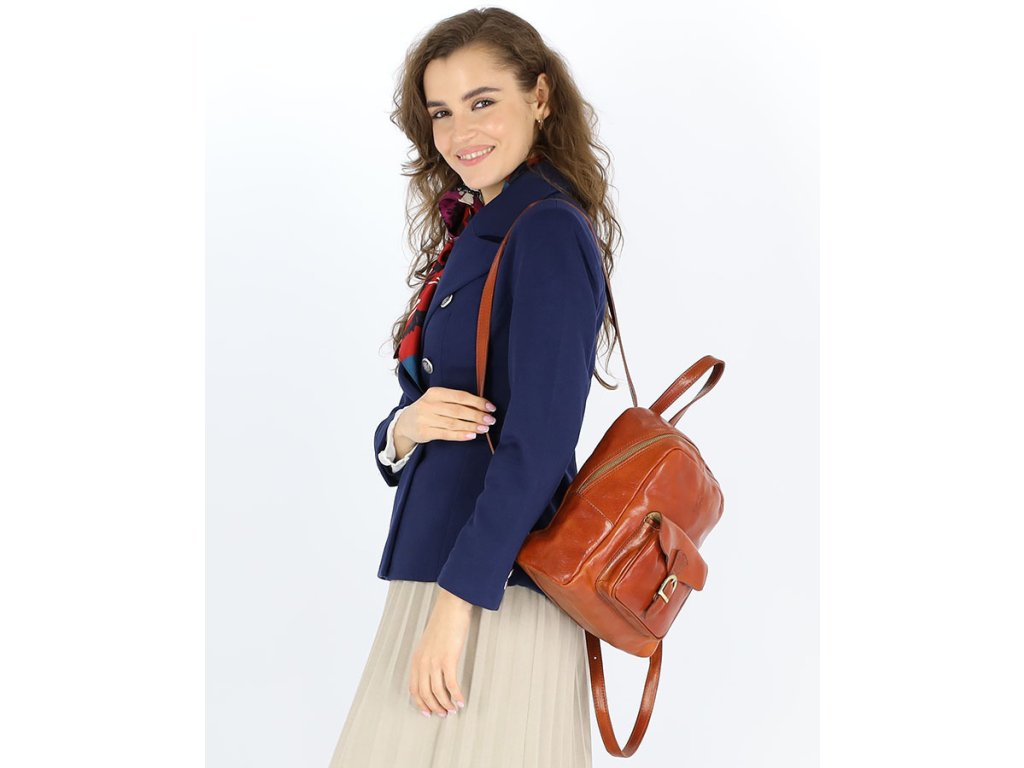 Štýlový dámsky batoh z prírodnej kože je dokonalým spojením elegancie a funkčnosti. Hladká, kvalitná koža v teplom odtieni hnedej dodáva každodennému outfitu nádych talianskeho luxusu.