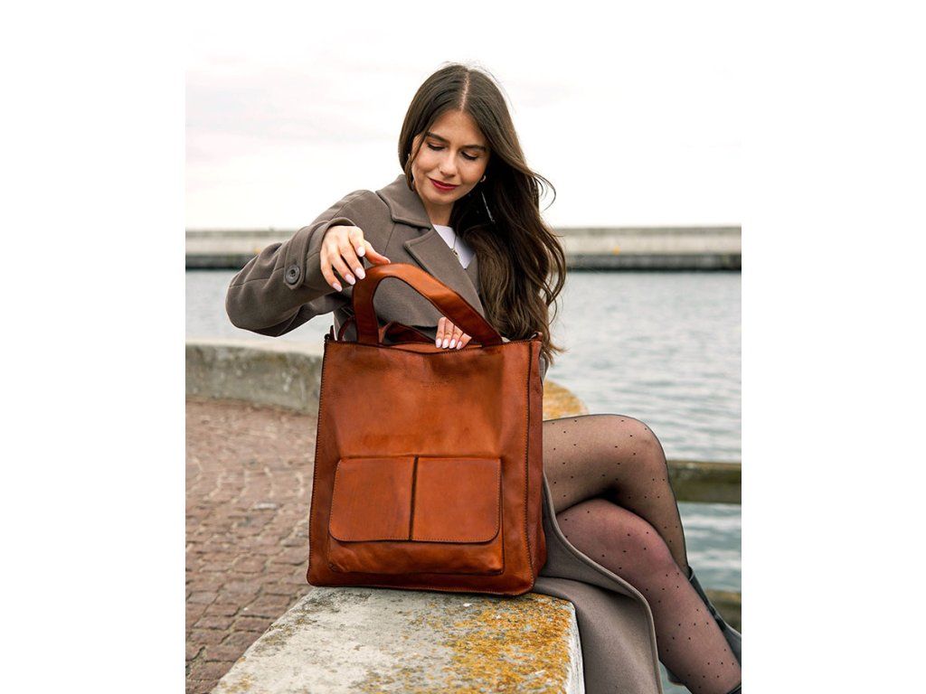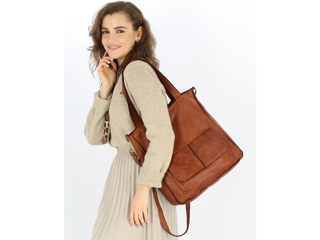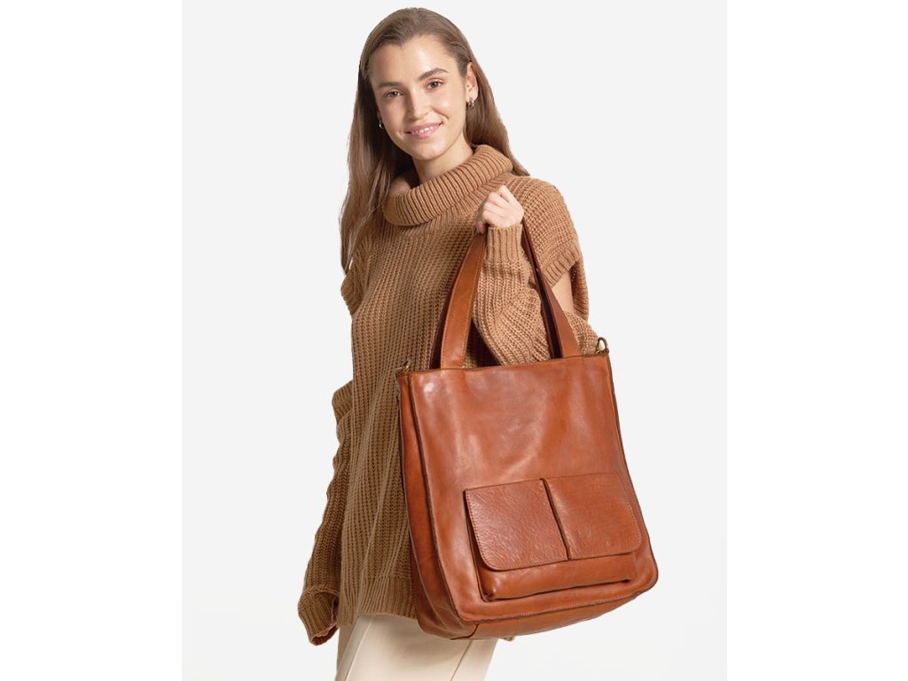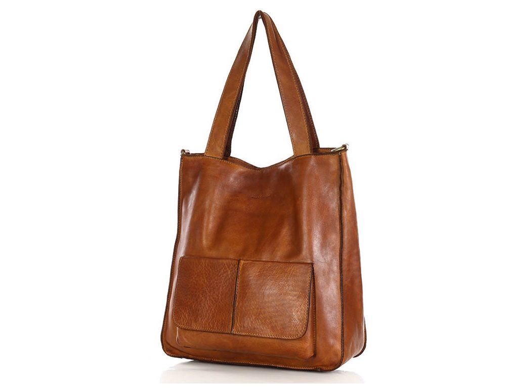 MARCO MAZZINI Camel kožená shopper kabelka A4