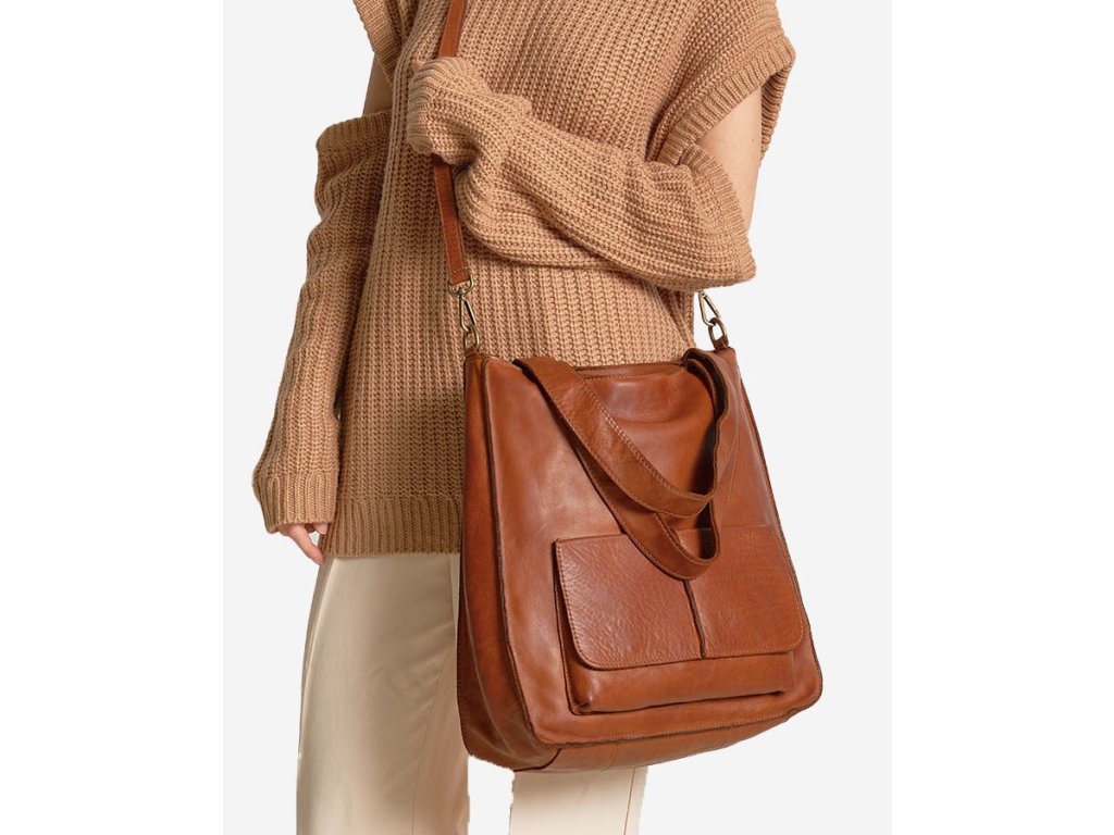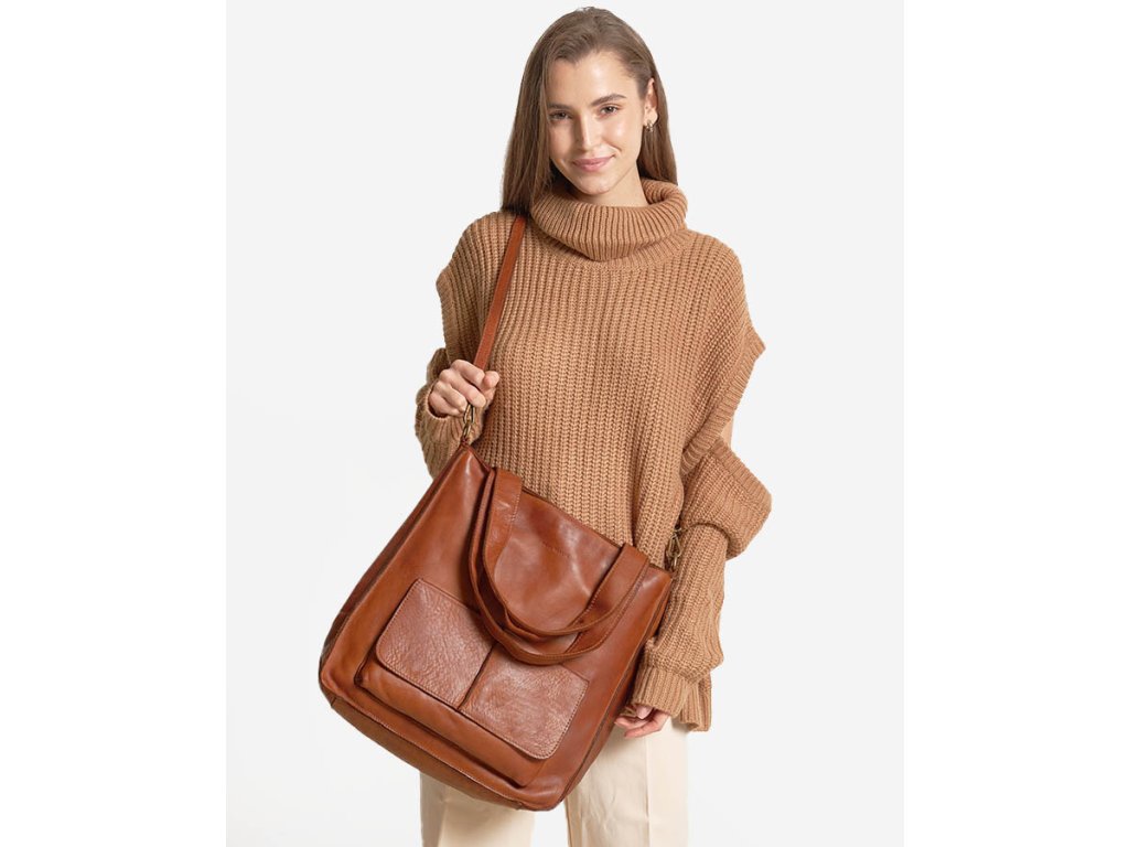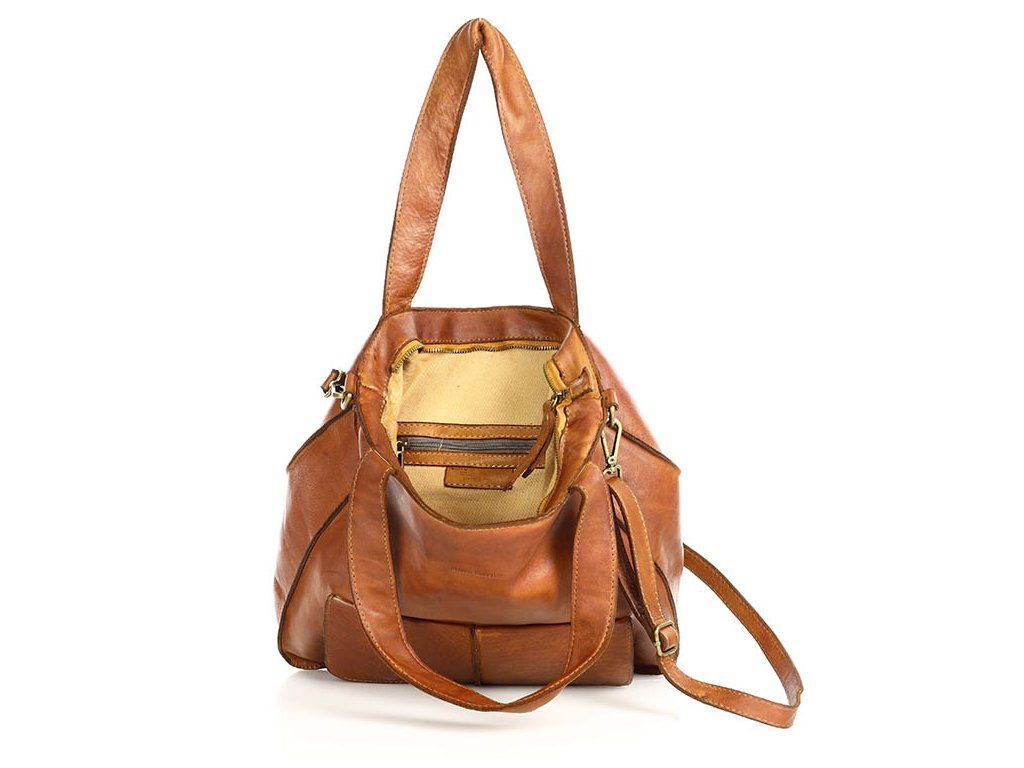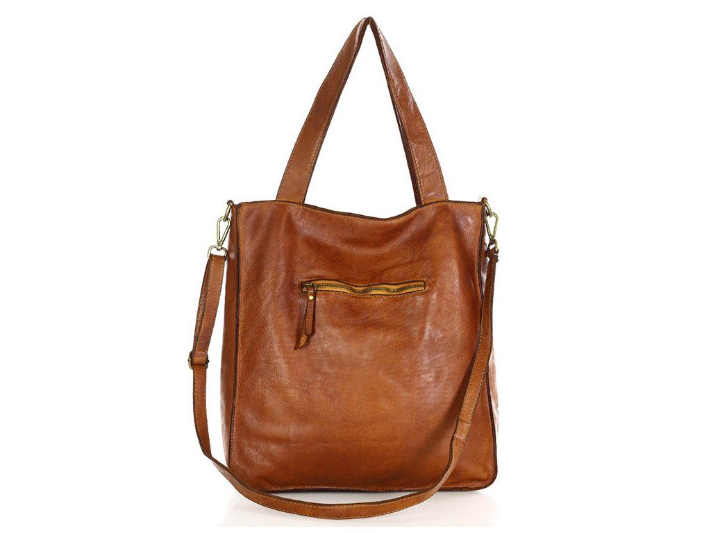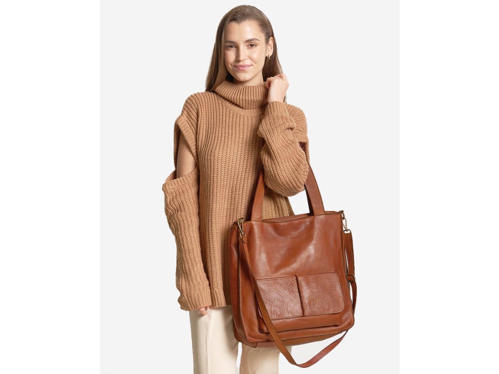 MARCO MAZZINI Camel kožená shopper kabelka A4