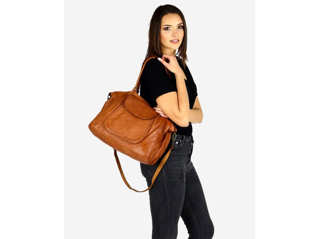 MARCO MAZZINI Camel kožená shopper kabelka dalla natura