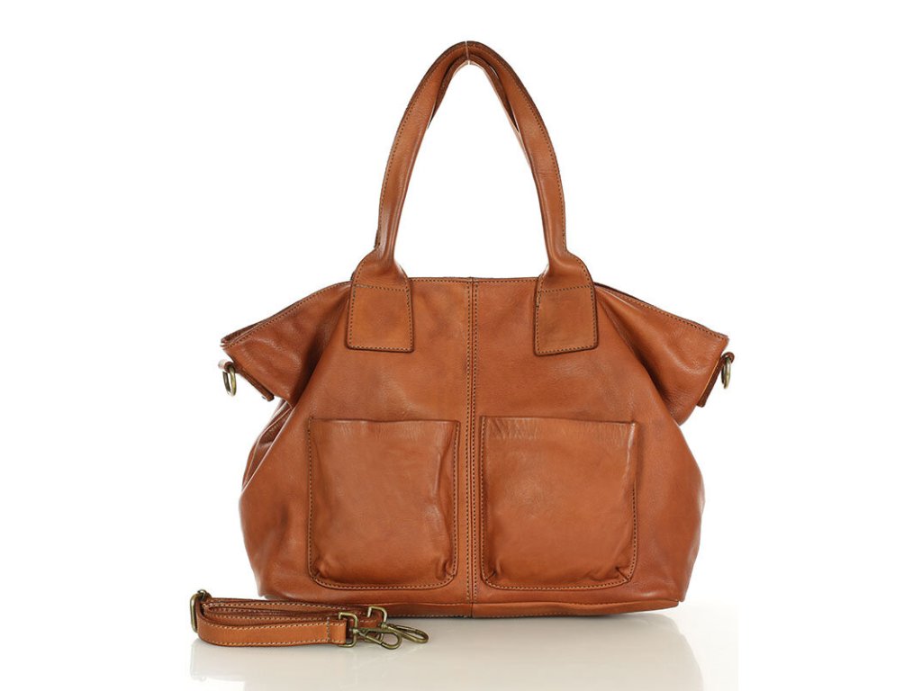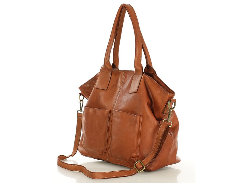 Camel kožená kabelka – veľký shopper bag s vreckami od MARCO MAZZINI