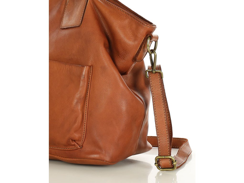 Vyrobená ručne v rodinných dielňach v Toskánsku. Prírodná koža farbená rastlinnými pigmentmi, bez toxínov – šetrná k tebe aj planéte. Každý kus je originál, ktorý vyniká štruktúrou kože a jedinečným vintage vzhľadom.