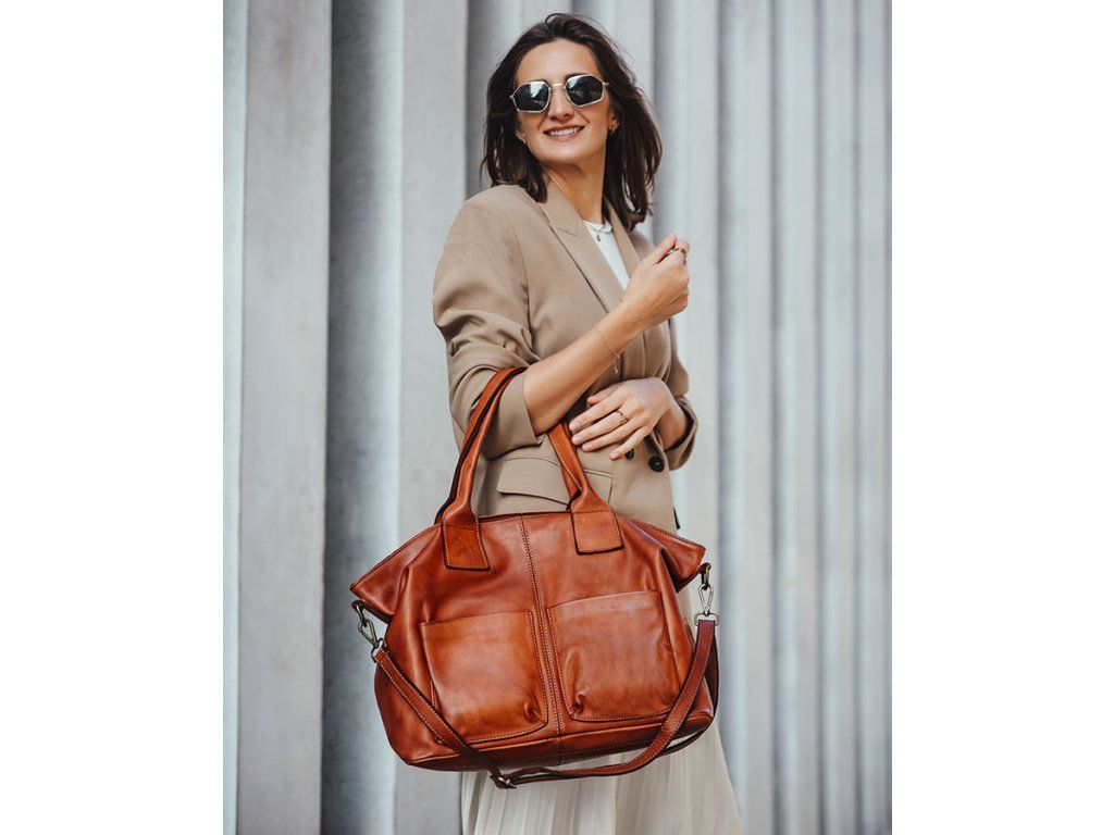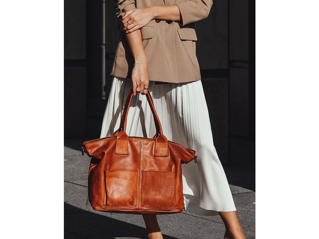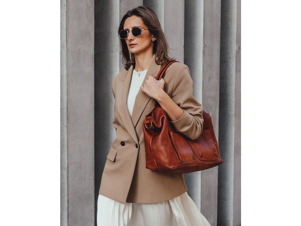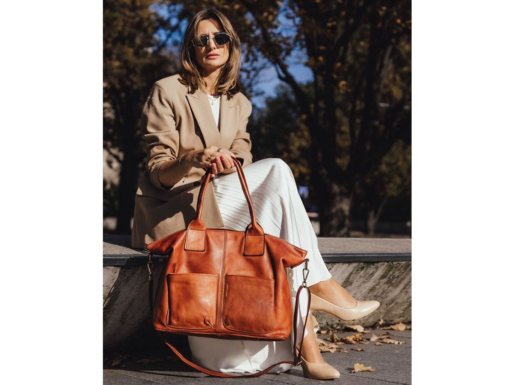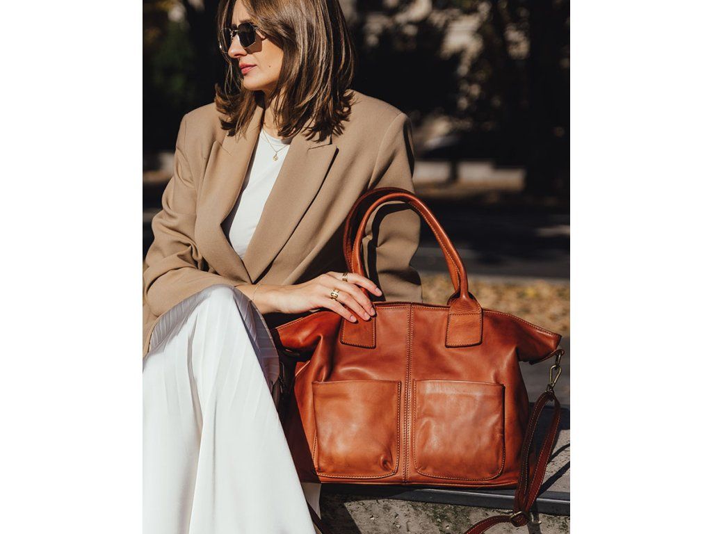 Elegantná a priestranná – táto dámska kabelka typu shopper z prírodnej hovädzej kože je dokonalou voľbou na každý deň. Zmestí dokumenty formátu A4, notebook aj všetky nevyhnutnosti. Ideálna do práce, na univerzitu alebo výlet.