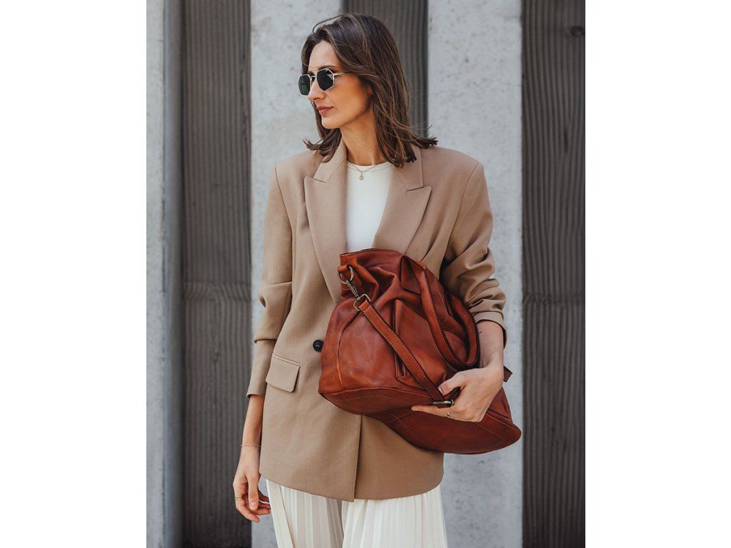 Vyrobená ručne v rodinných dielňach v Toskánsku. Prírodná koža farbená rastlinnými pigmentmi, bez toxínov – šetrná k tebe aj planéte. Každý kus je originál, ktorý vyniká štruktúrou kože a jedinečným vintage vzhľadom.