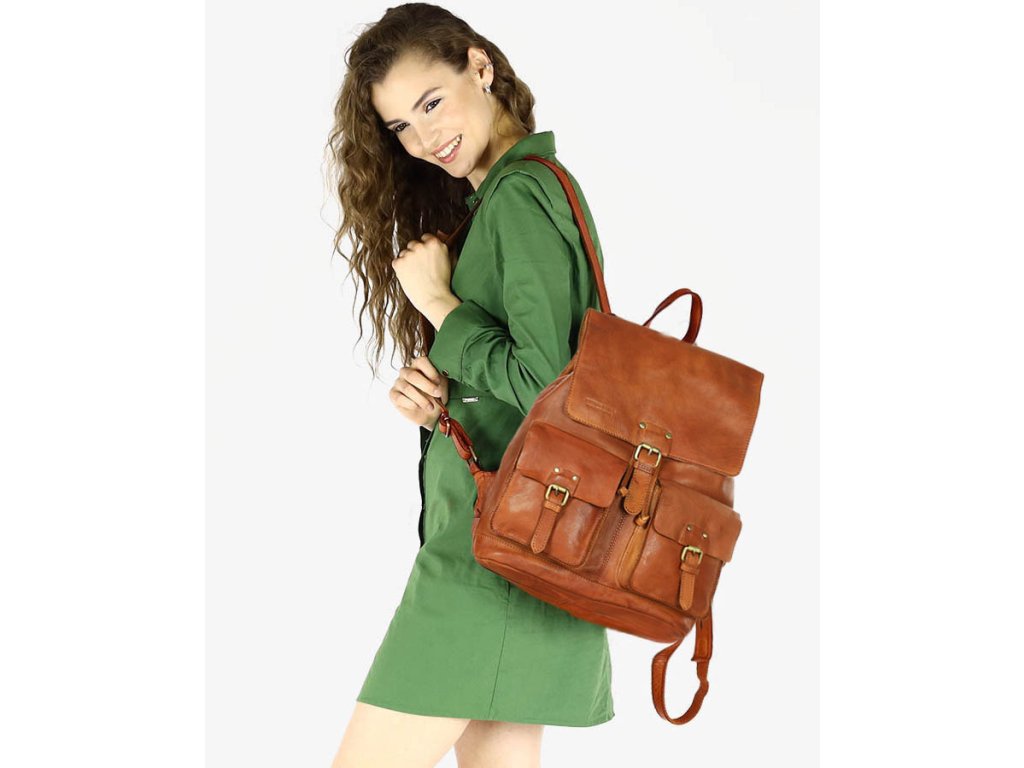 MARCO MAZZINI Camel kožený batoh A4 s vreckami