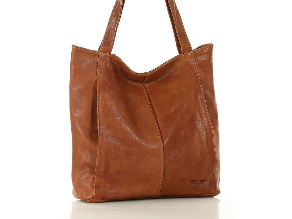 MARCO MAZZINI Camel mäkká kožená shopper taška