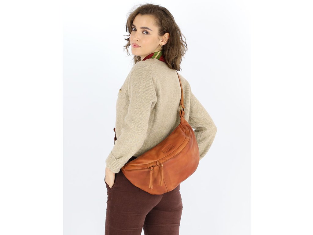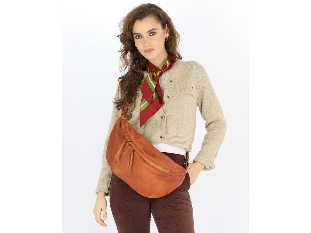 Objavte veľkú dámsku ľadvinku z prírodnej kože z kolekcie Marco Mazzini Runway. Mäkká hovädzia koža dodáva kabelke výnimočný charakter, zatiaľ čo praktický tvar polmesiaca zaručuje pohodlie pri každodennom nosení. Vďaka zväčšenému rozmeru pohodlne odnesiete mobil, peňaženku, kľúče či kozmetiku. Kabelka má hlavné zapínanie na zips, vonkajšie vrecko na zips a vnútornú bavlnenú podšívku s ďalším vreckom na zips.