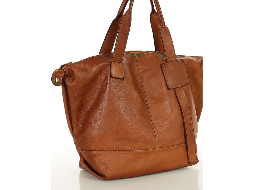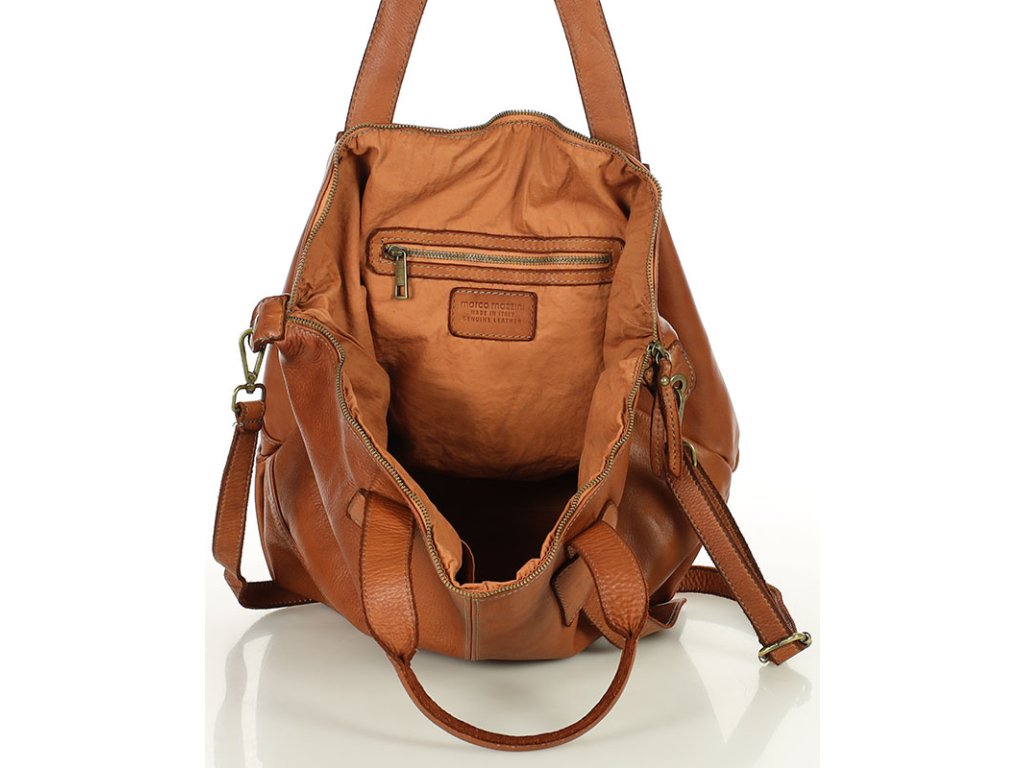 Marco Mazzini Camel veľká kožená shopper kabelka A4