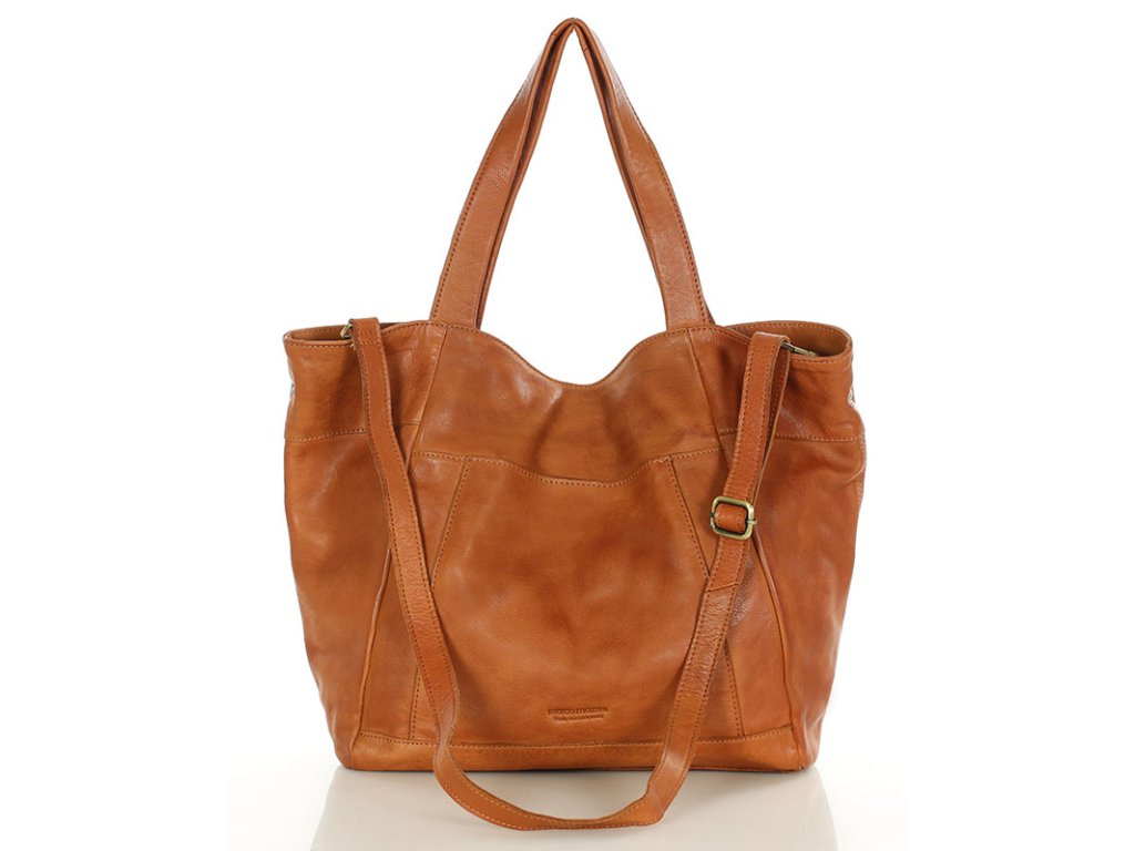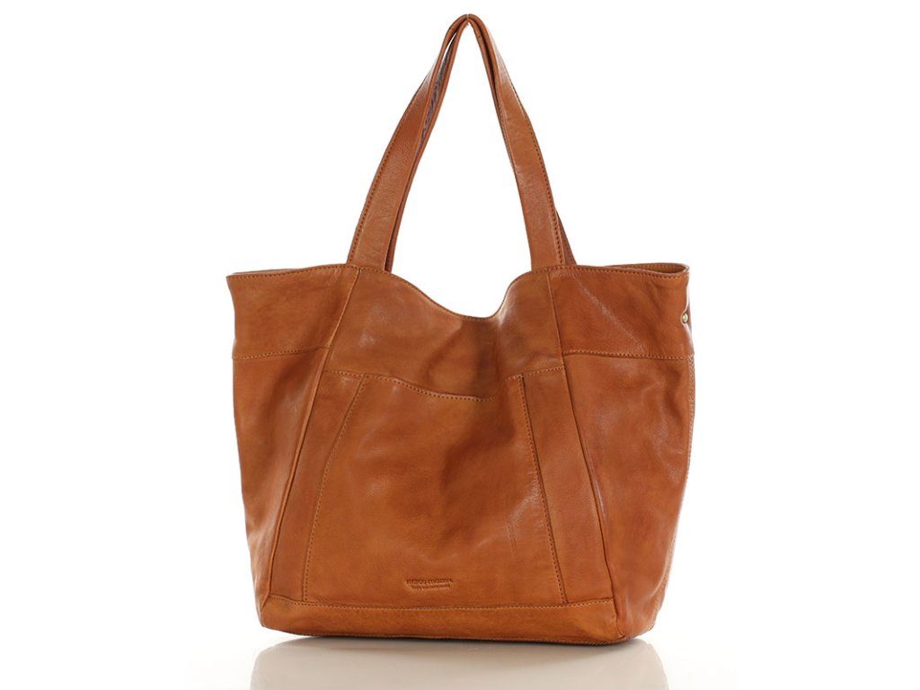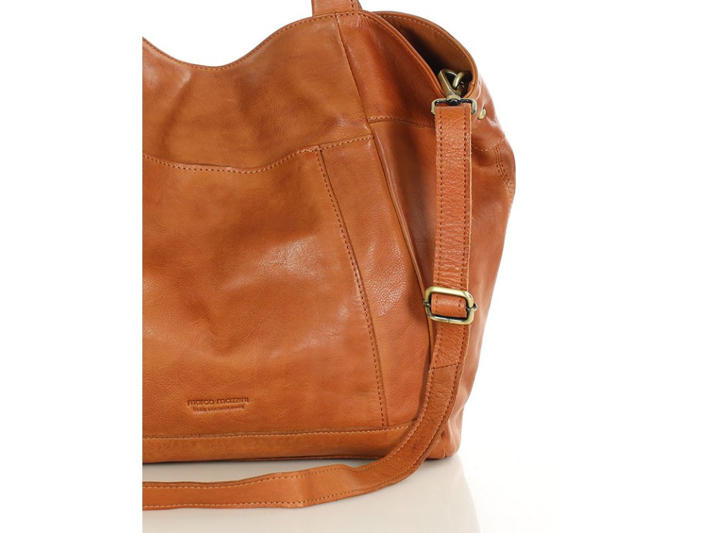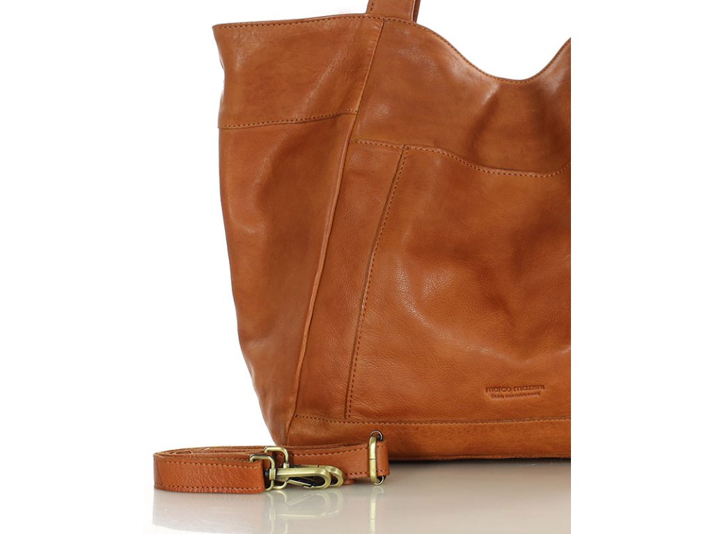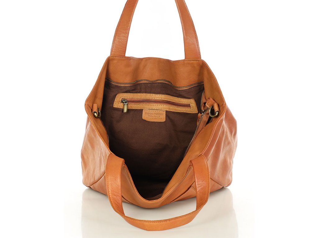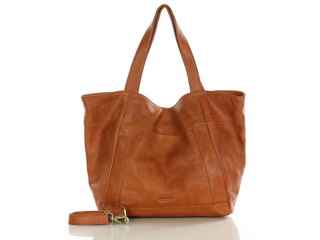 MARCO MAZZINI Camel Veľká kožená shopper taška s vreckom