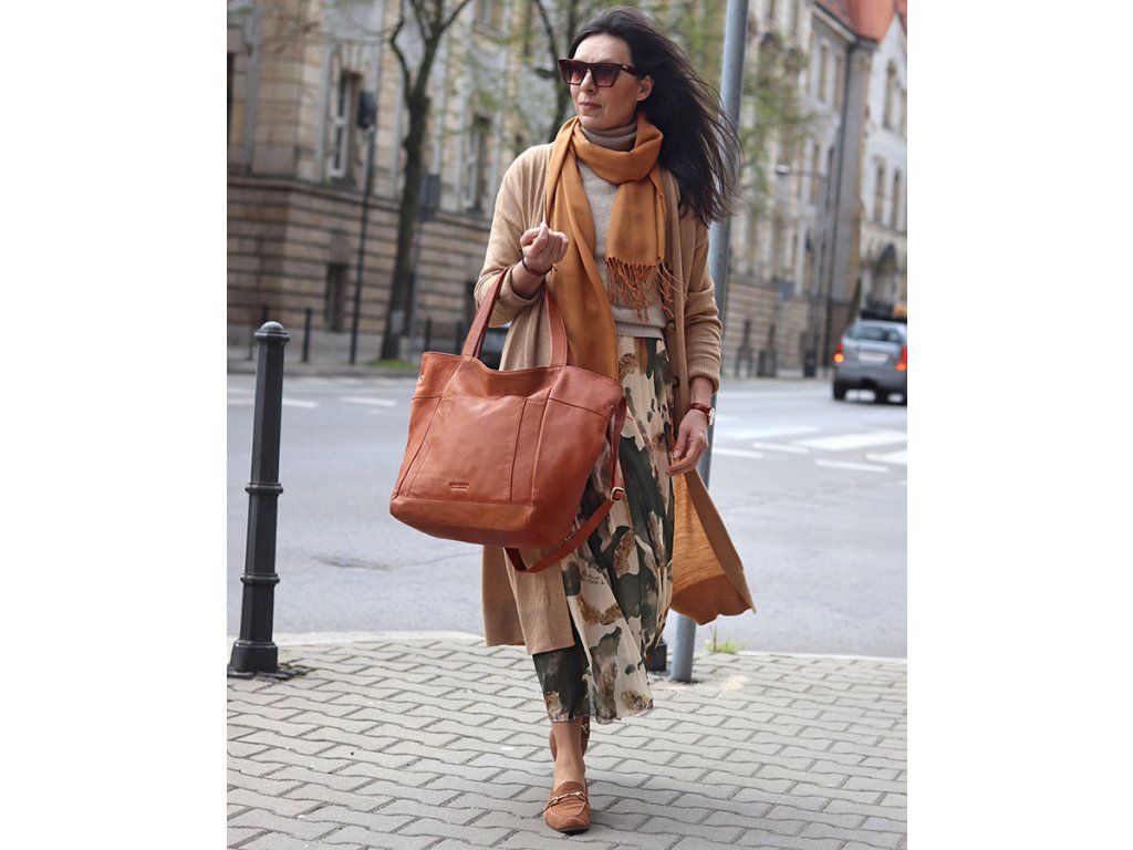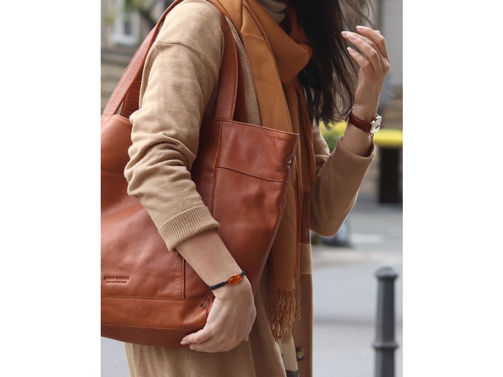 Veľká kožená shopper kabelka s vreckom – praktická a štýlová