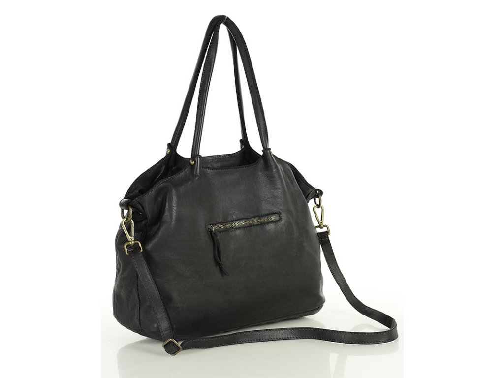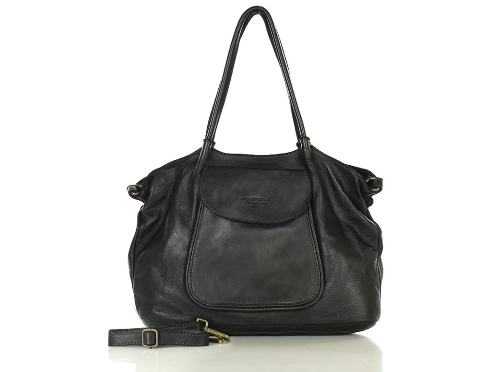 MARCO MAZZINI Čierna kožená shopper kabelka dalla natura