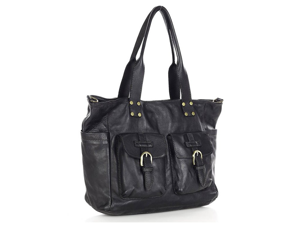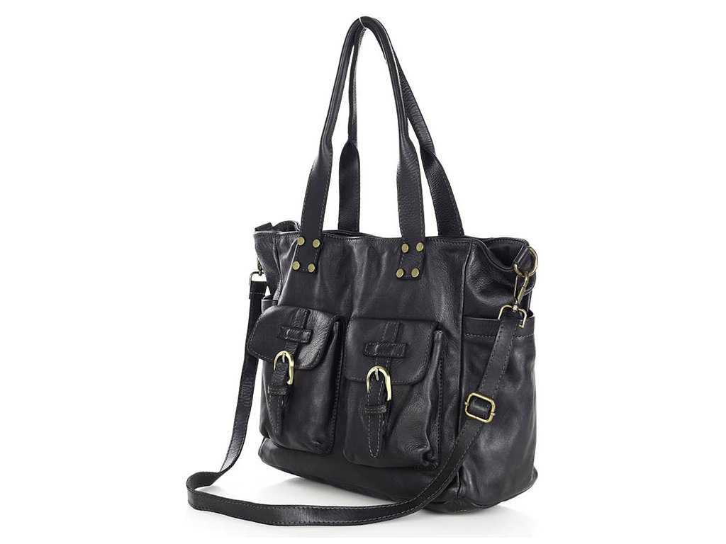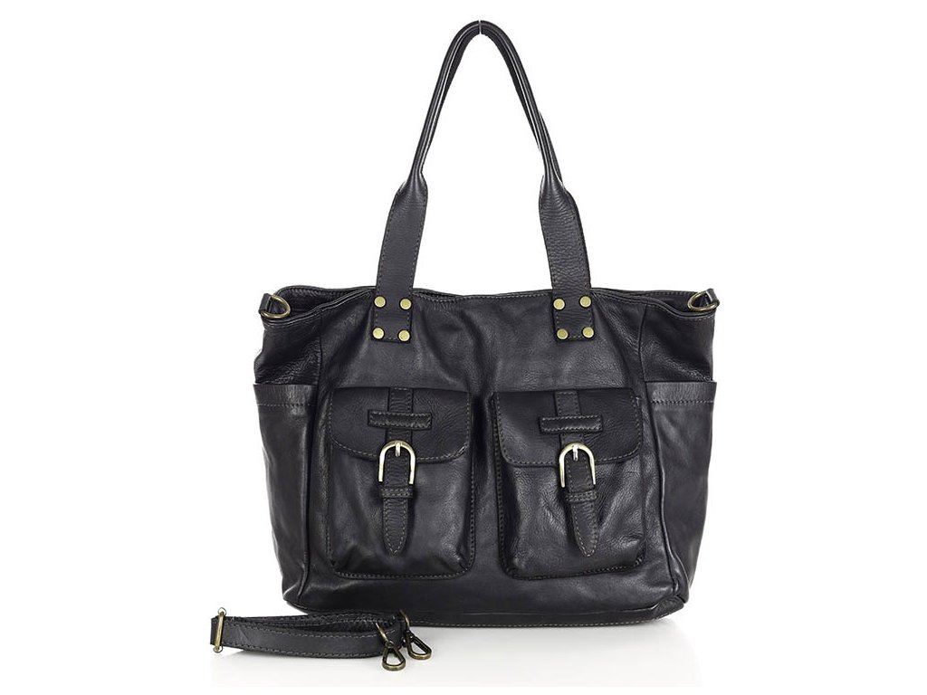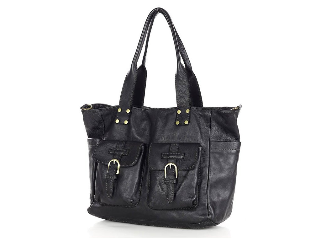 MARCO MAZZINI Čierna kožená shopper kabelka XL