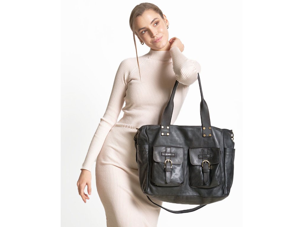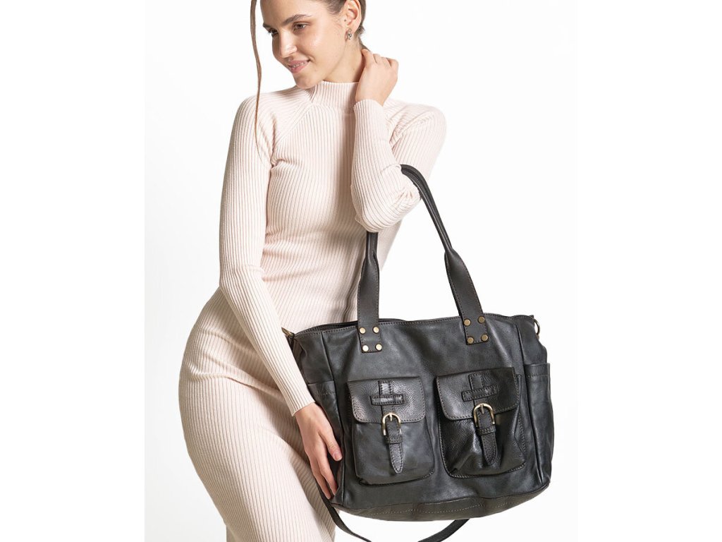 Dámska shopper kabelka MARCO MAZZINI spája nadčasový vintage štýl s praktickosťou. Vyrobená z mäkkej prírodnej kože, ručne šitá a farbená v talianskych dielňach. Zmestí A4 aj notebook, ponúka praktické vrecká vpredu aj vo vnútri a pohodlné nosenie na ramene. Každý kus je originál s jemne odlišnou štruktúrou a farbou.