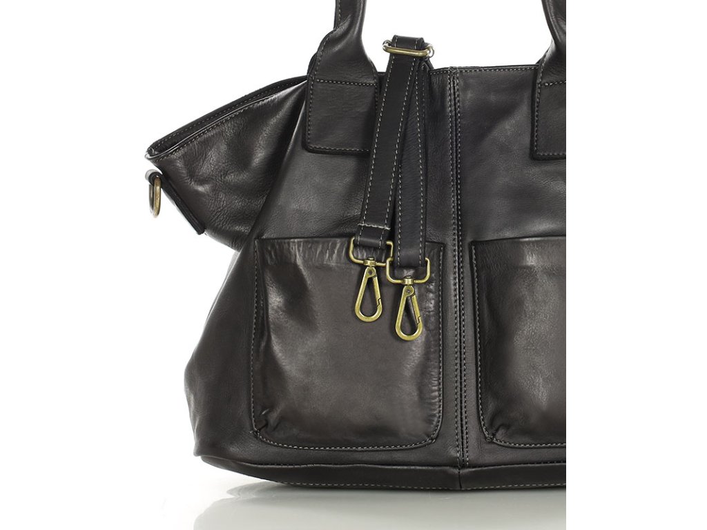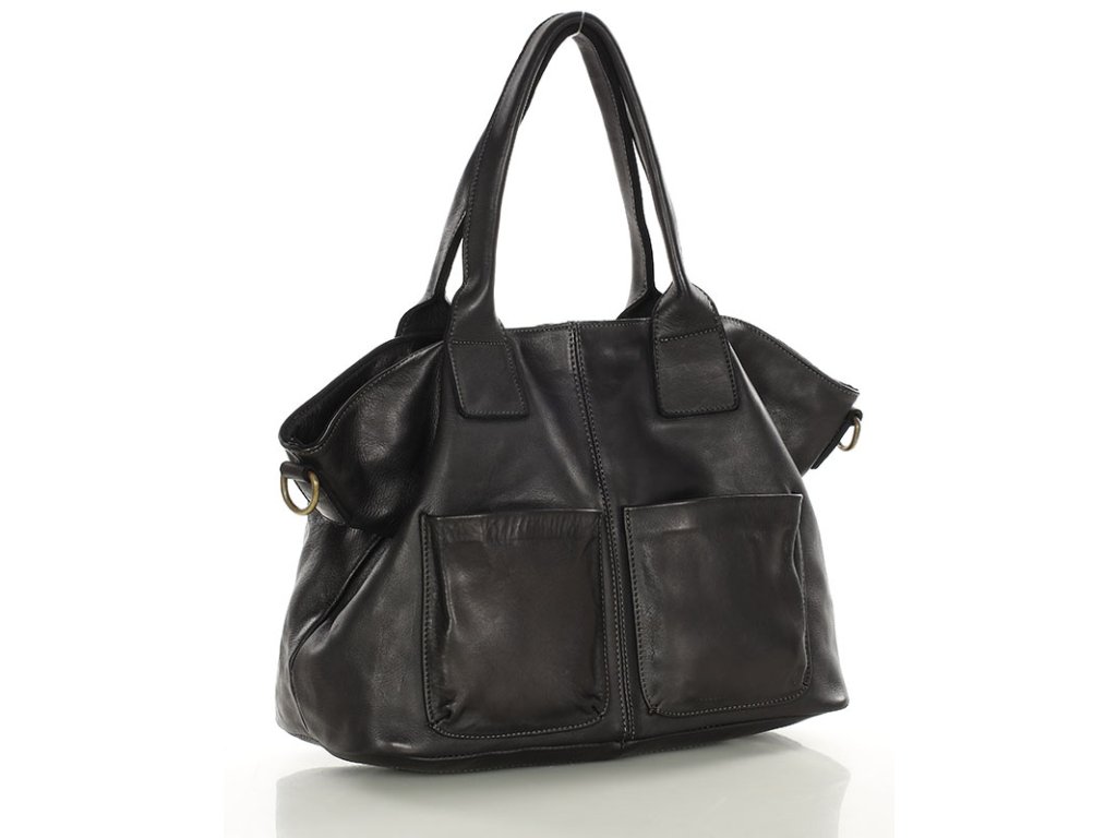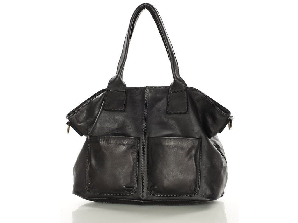 Čierna kožená kabelka – veľký shopper bag s vreckami od MARCO MAZZINI