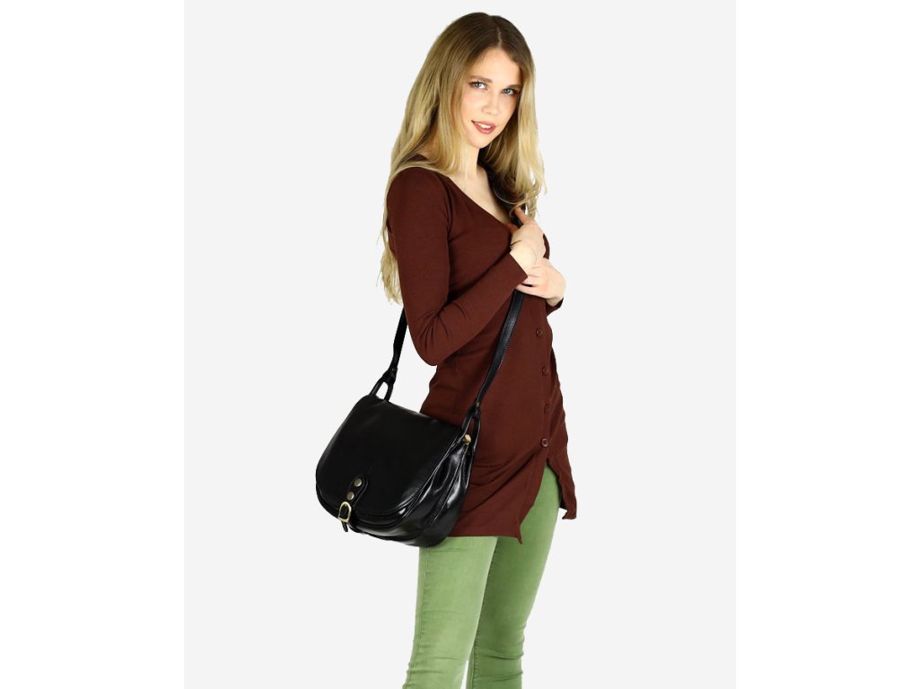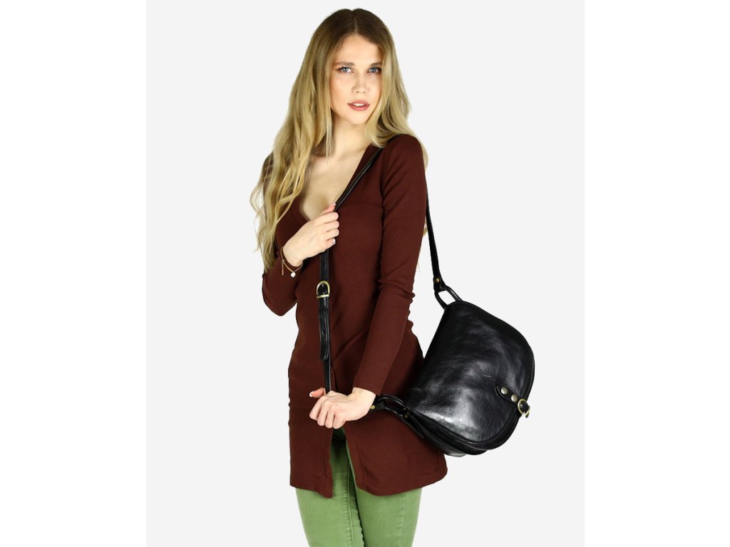 Zaoblená kabelka s klopou v štýle saddle bag je nadčasová klasika, ktorá nikdy nevyjde z módy. Tento veľký taliansky model je ideálny na každodenné nosenie – pohodlný, priestranný a štýlovo minimalistický.
