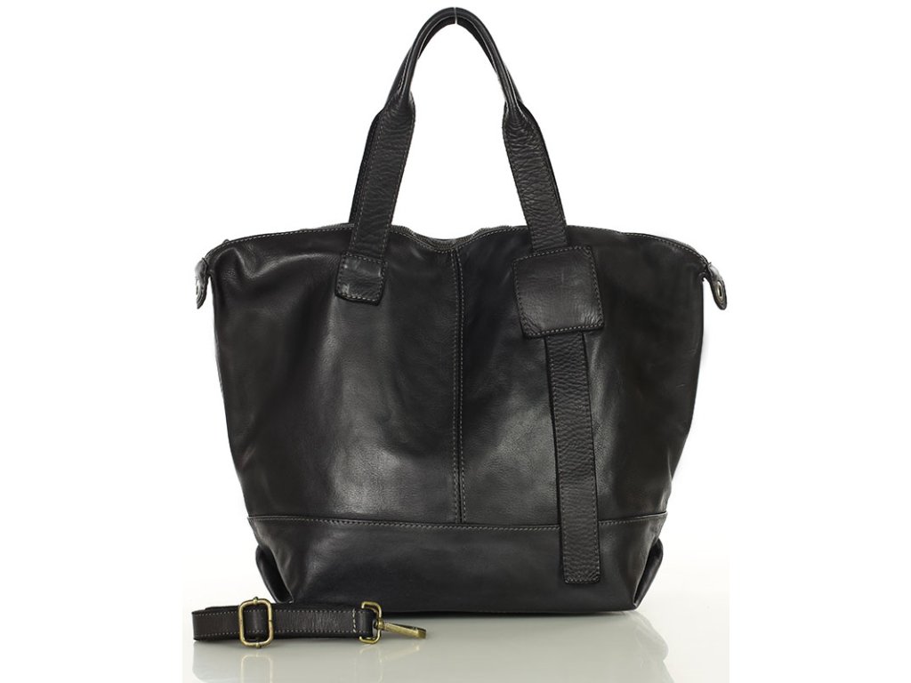 Marco Mazzini Čierna veľká kožená shopper kabelka A4