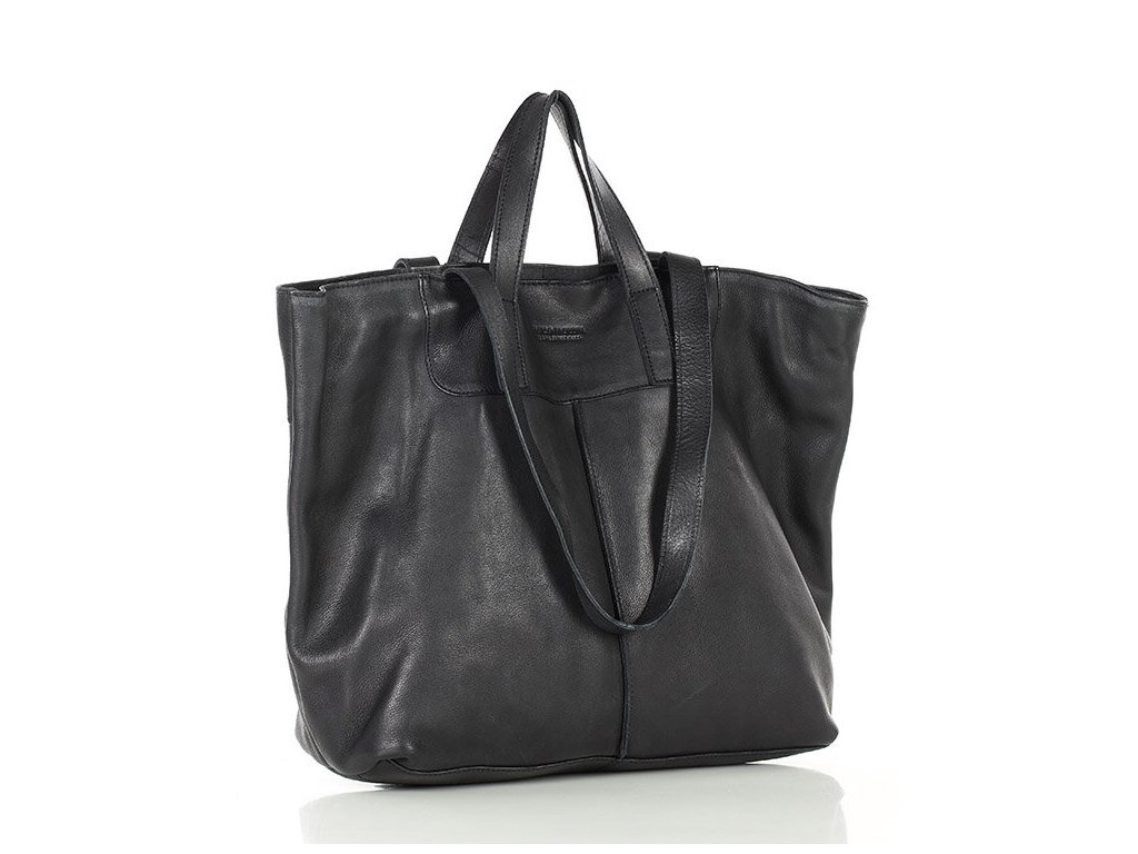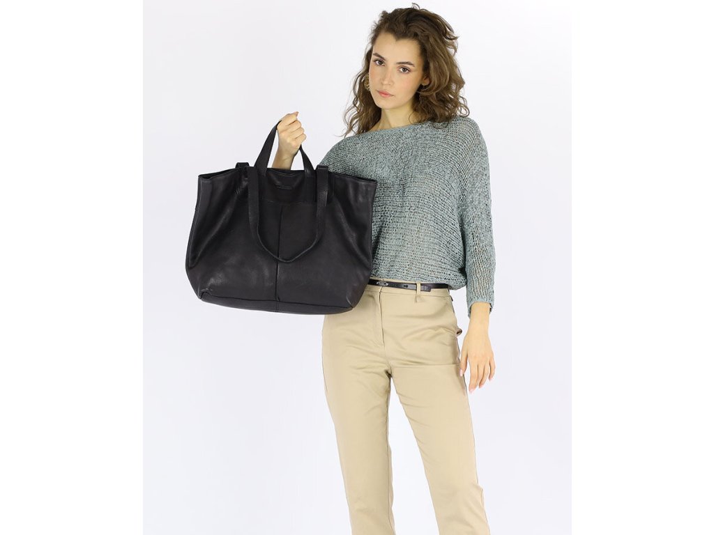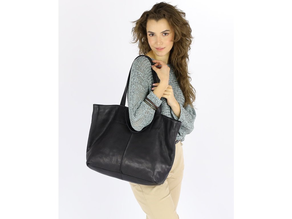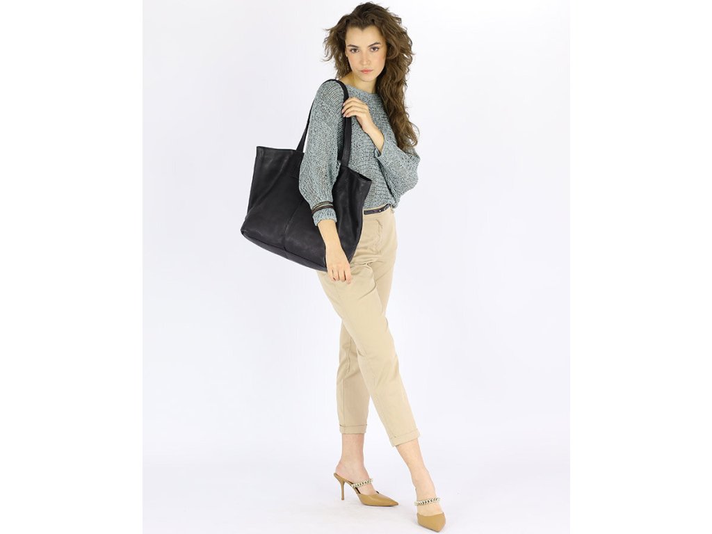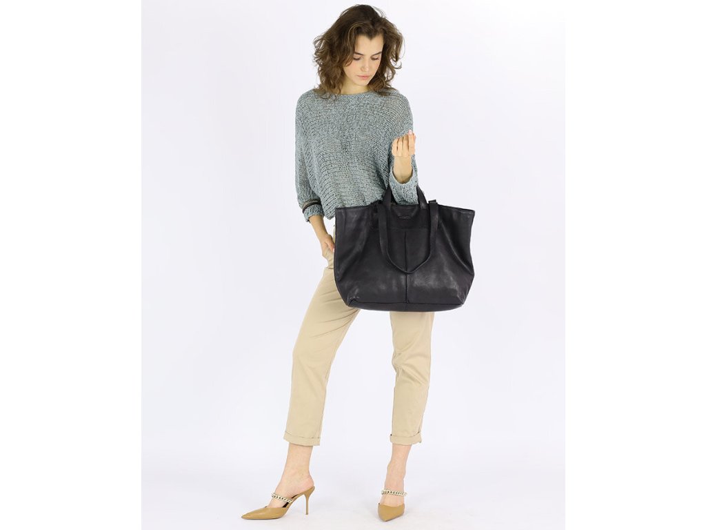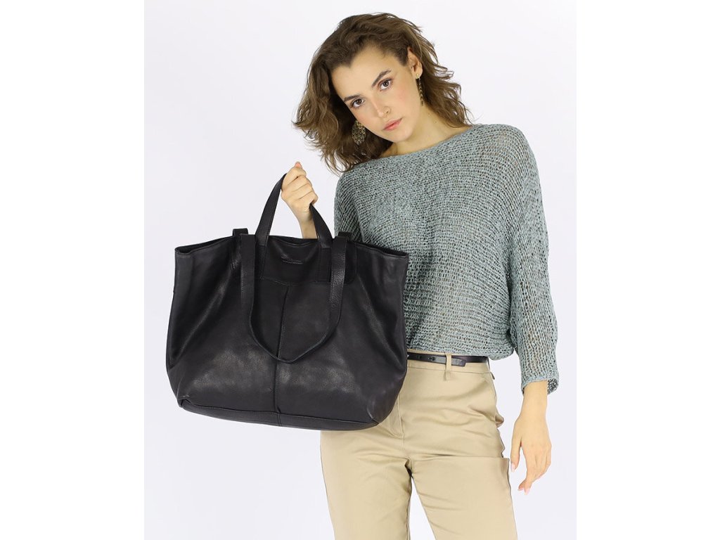 MARCO MAZZINI Čierna veľká kožená shopper kabelka
