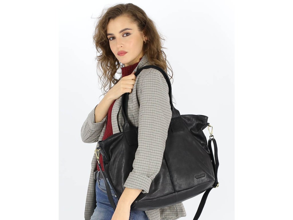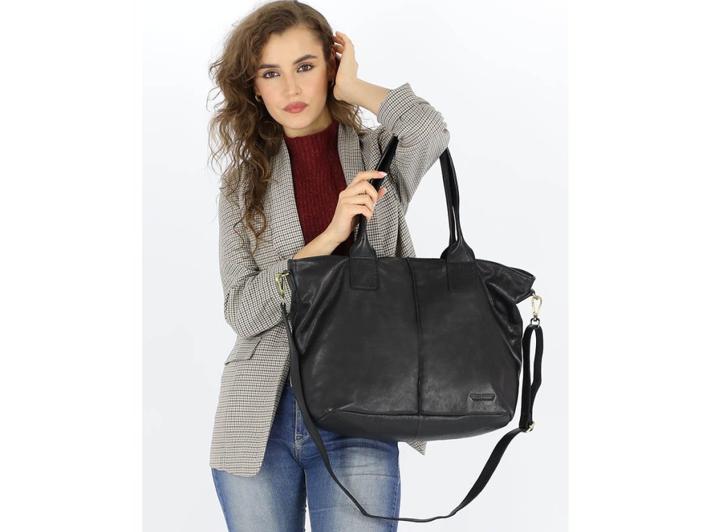 MARCO MAZZINI Čierna veľká kožená shopper taška