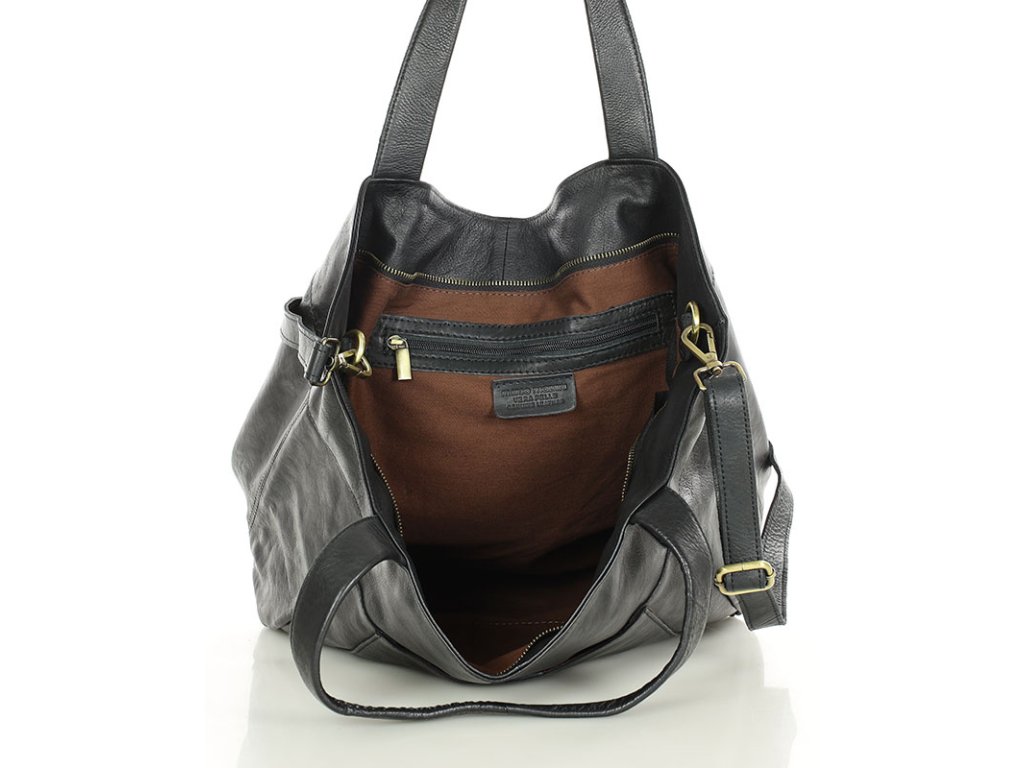 MARCO MAZZINI Čierna veľká kožená shopper taška s vreckom