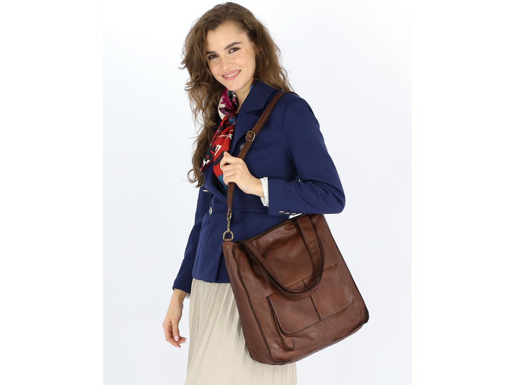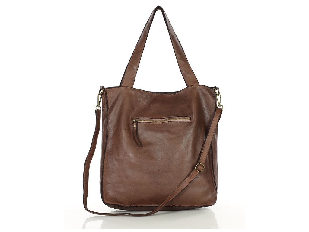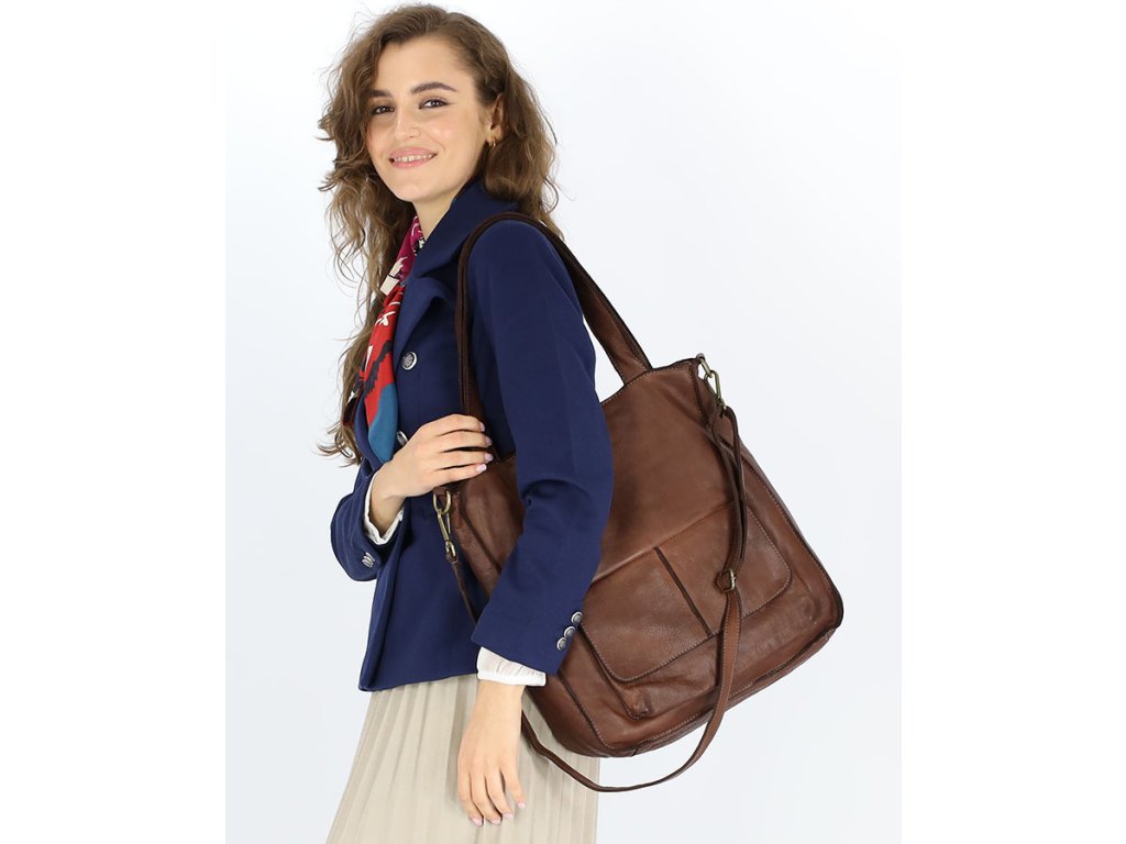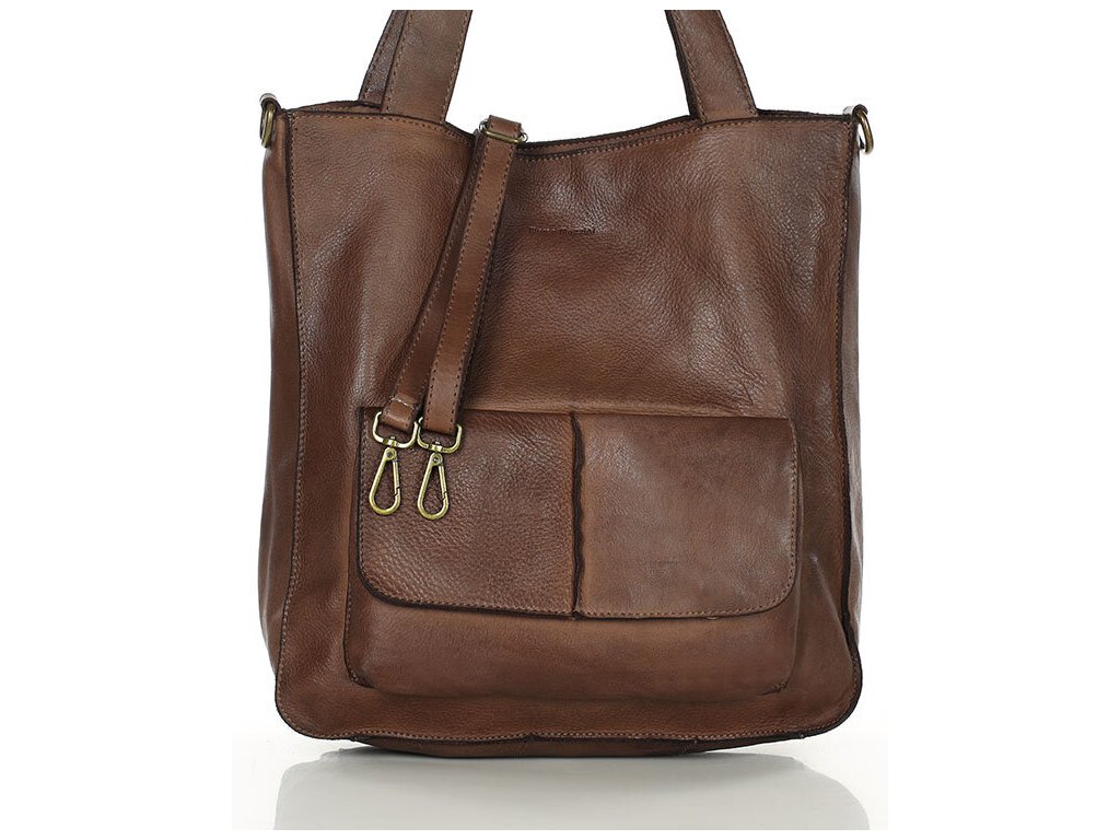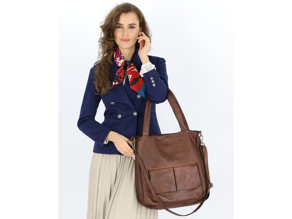 MARCO MAZZINI Čokoládová kožená shopper kabelka A4