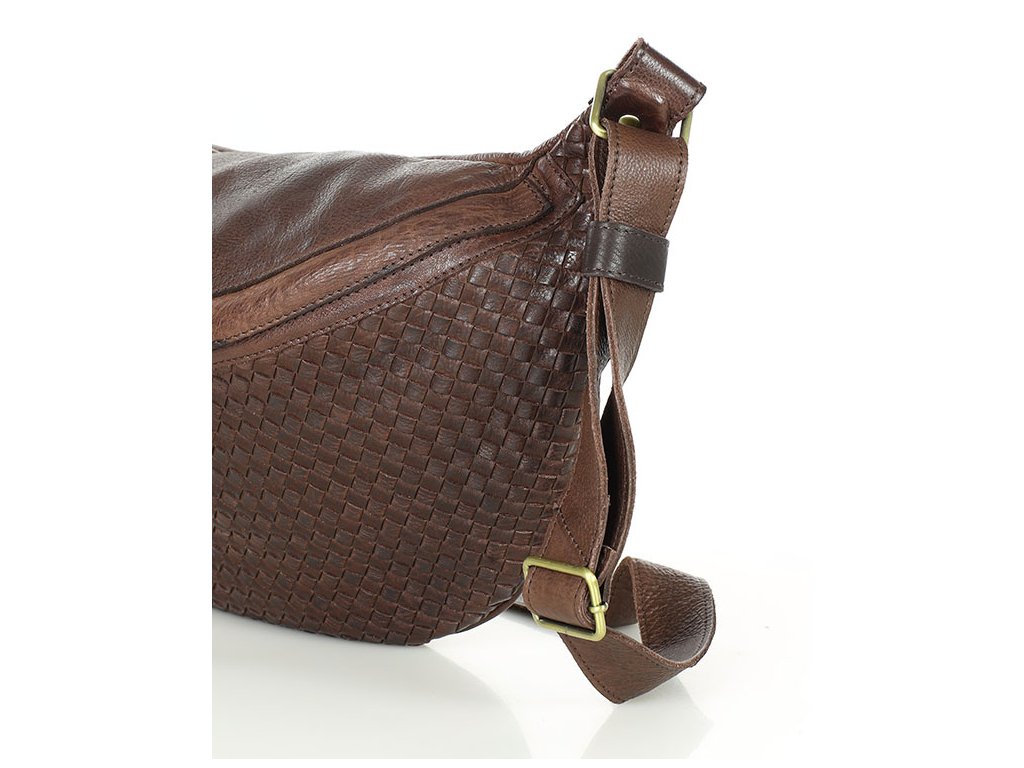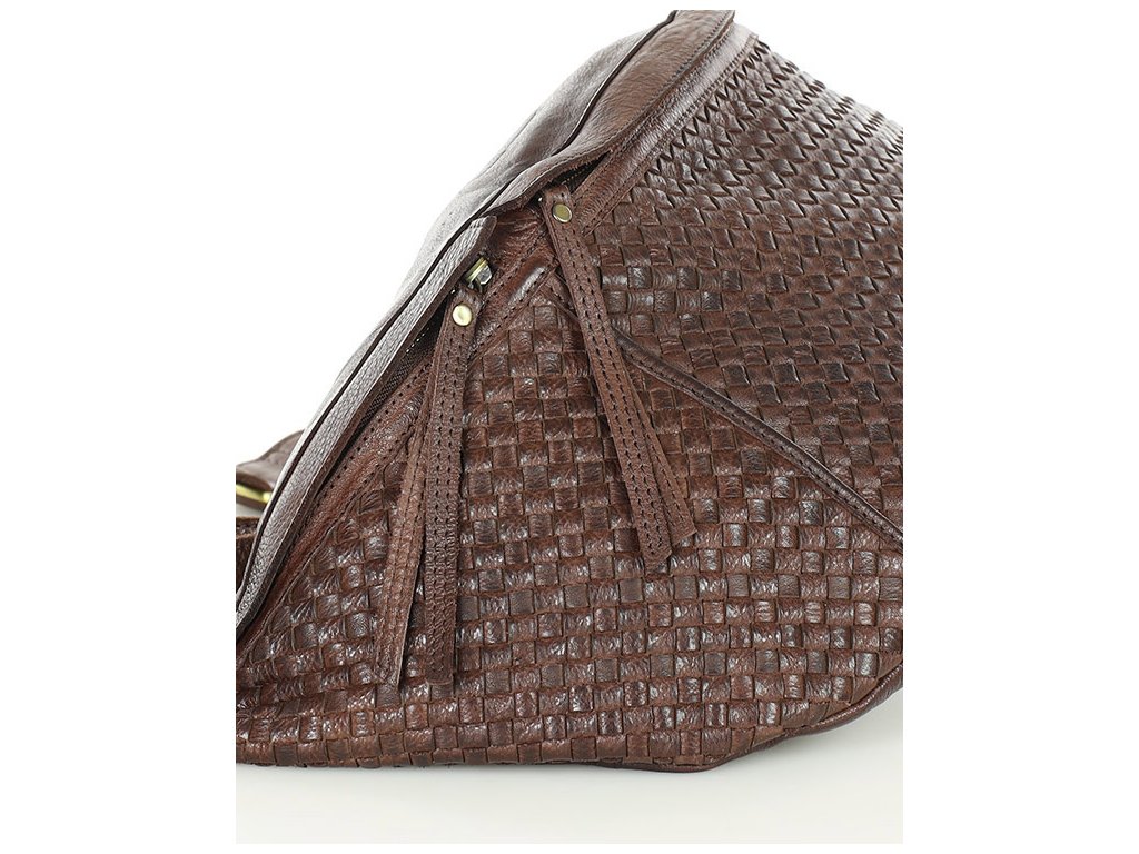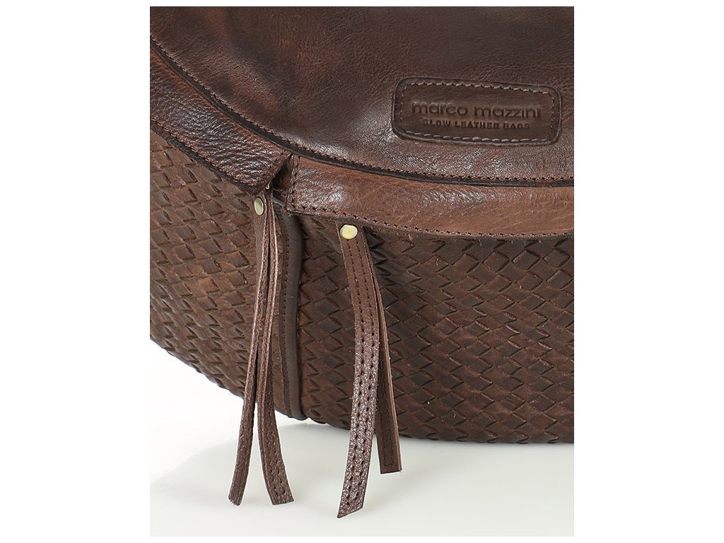 MARCO MAZZINI Čokoládovo hnedá pletená kožená kabelka/ľadvinka