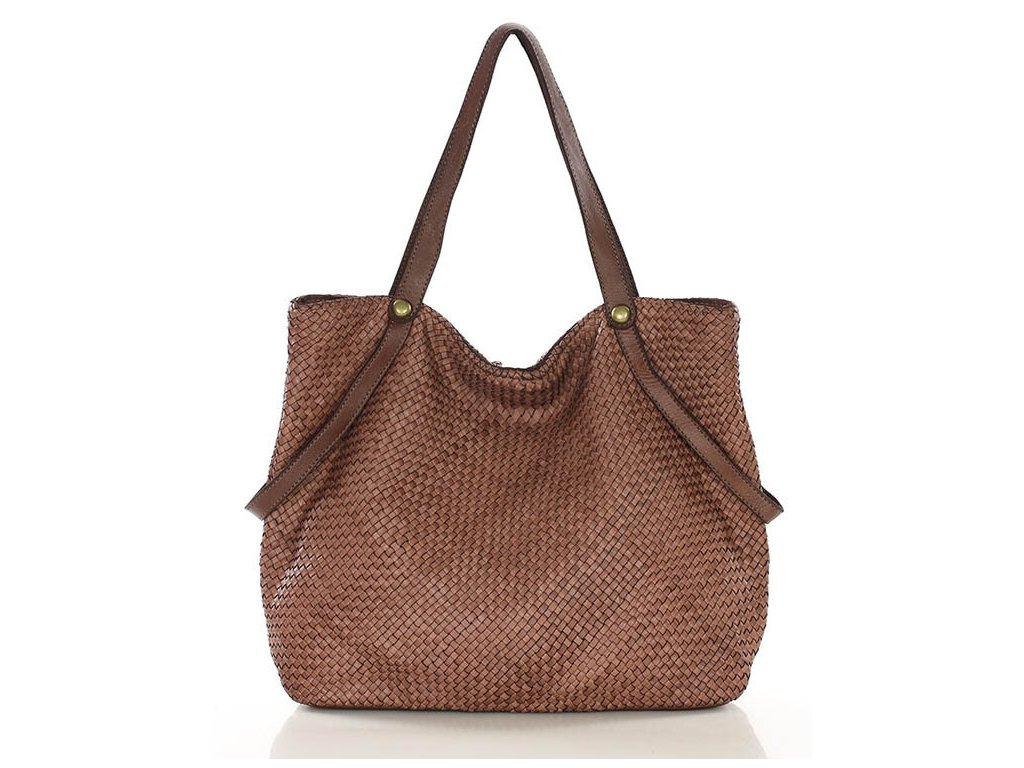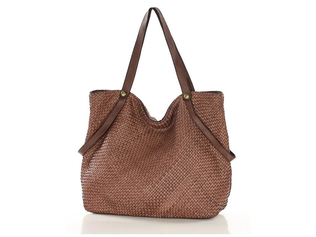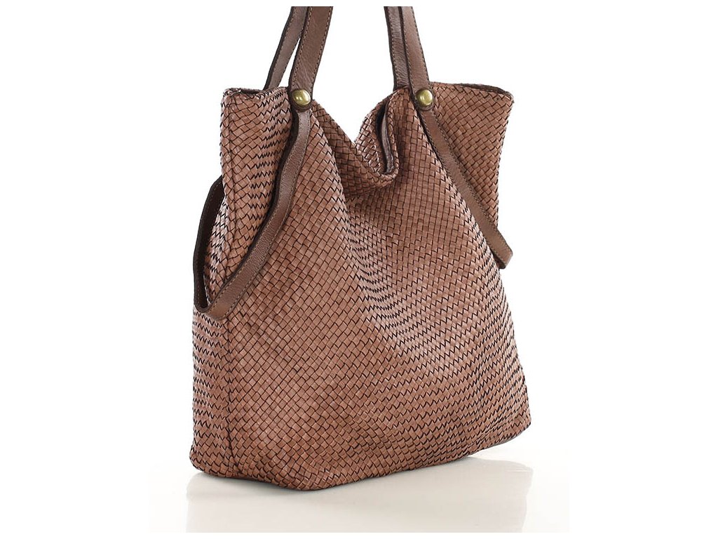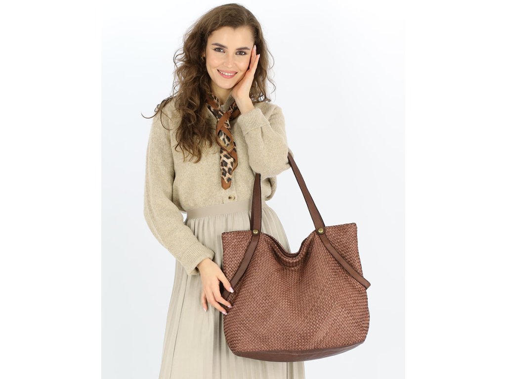MARCO MAZZINI Hnedá dámska shopper kabelka z tkanej kože