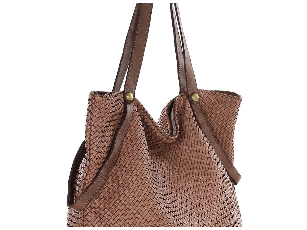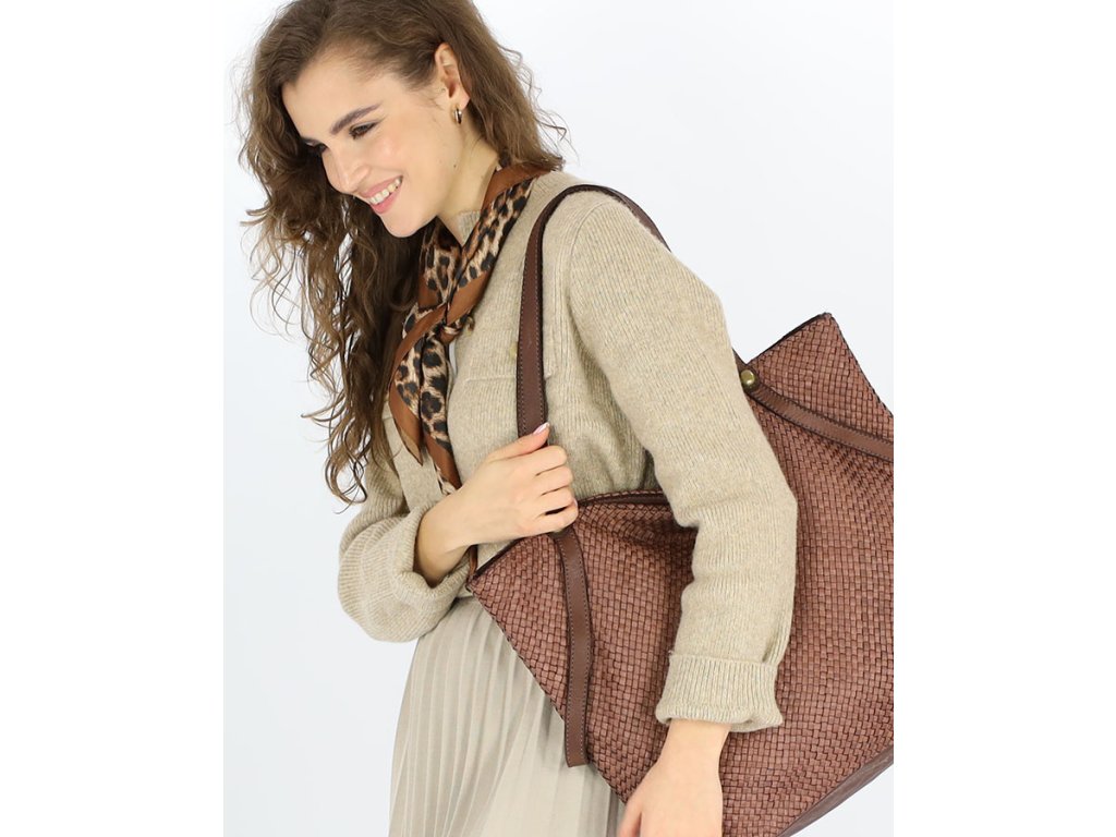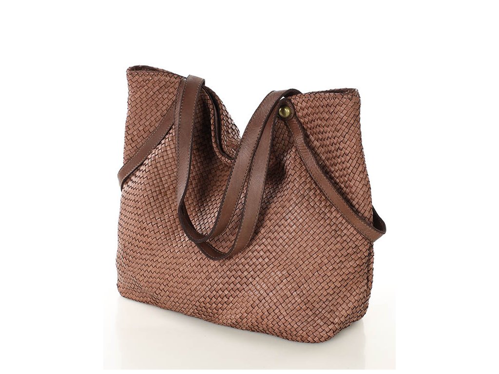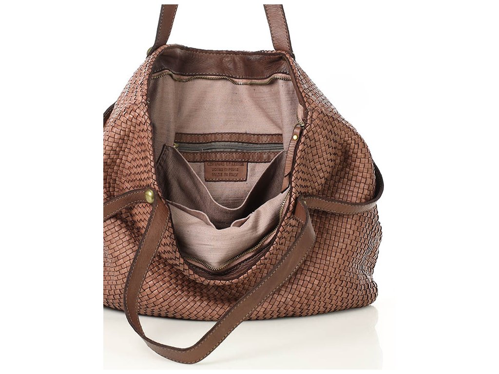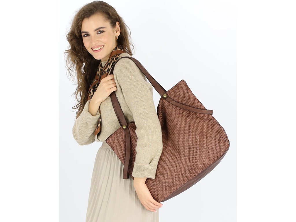 MARCO MAZZINI Hnedá dámska shopper kabelka z tkanej kože