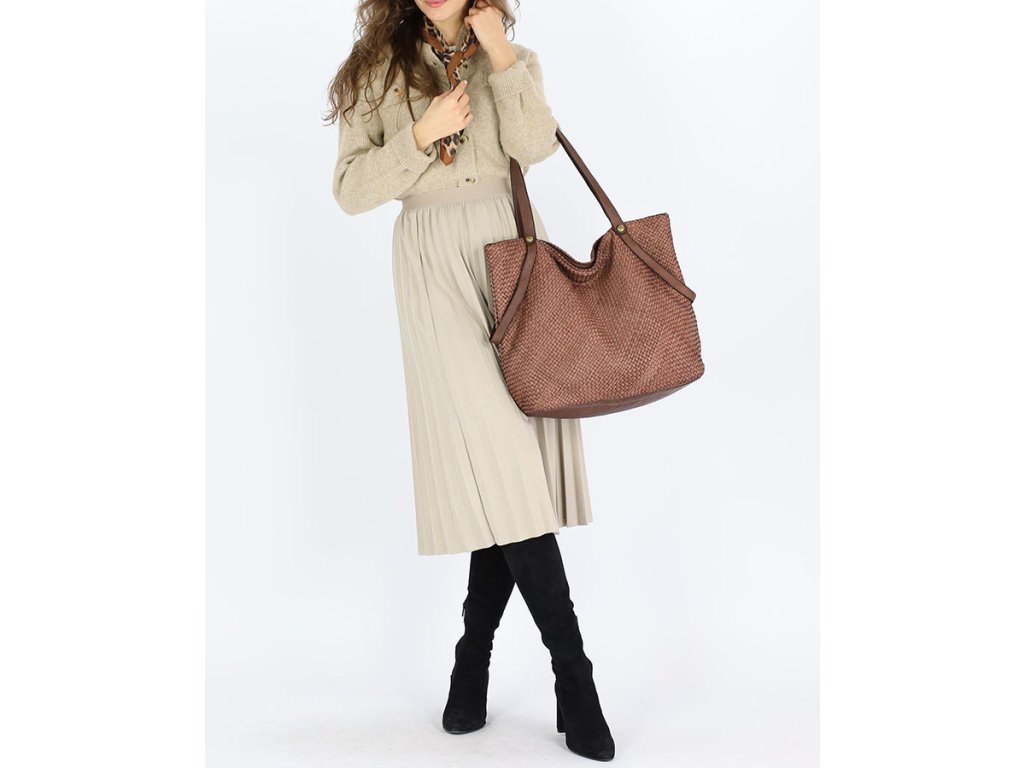 Objavte eleganciu a praktickosť, ktorú ponúka pletená kabelka z prírodnej kože. Tento model je ideálnou voľbou pre ženu, ktorá hľadá priestrannú a štýlovú tašku. Vďaka ručne zapletanej koži zaujme táto veľká shopper kabelka originálnym dizajnom, ktorý dodá charakter každému outfitu. Pletená shopper kabelka je vyrobená z prírodnej hovädzej lícovej kože s hladkým povrchom. Tento typ kože je známy svojou jemnosťou, zamatovým dotykom a zároveň vysokou odolnosťou voči zaťaženiu.