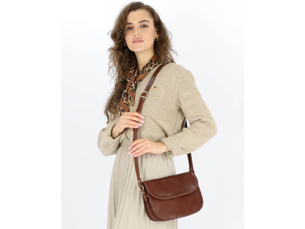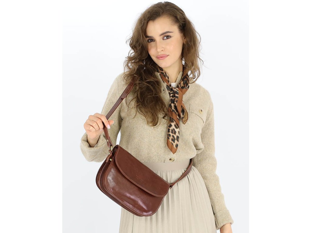 MARCO MAZZINI Hnedá kožená crossbody kabelka