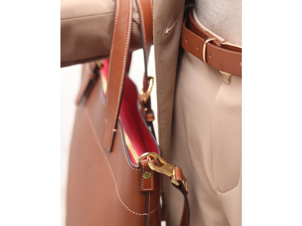 Ideálna kabelka na každý deň aj do práce – so štýlovými detailmi a nastaviteľným ramienkom, ktoré umožňuje nosenie na pleci aj crossbody. Vnútro je podšité prírodnou kožou v kontrastnom medovom odtieni, čo dodáva kabelke exkluzívny charakter.