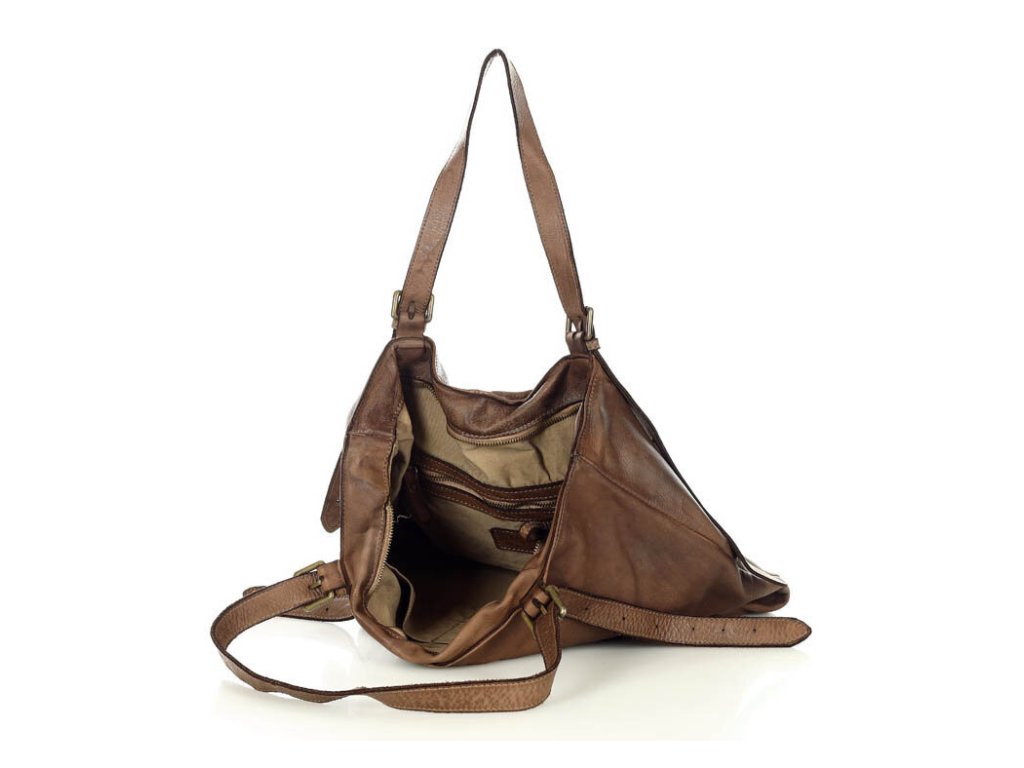 Elegantná kabelka v štýle mestského minimalizmu, ktorá očarí každú milovníčku vintage. Vyrobená z mäkkej prírodnej kože v štýle „old look“, ručne šitá v malých talianskych dielňach. Vďaka dvojitým nastaviteľným rúčkam sa pohodlne nosí na ramene. Vo vnútri podšívka, jedno hlavné oddelenie, zipsová kapsa a dve otvorené priehradky. Zapínanie na kovový zips.