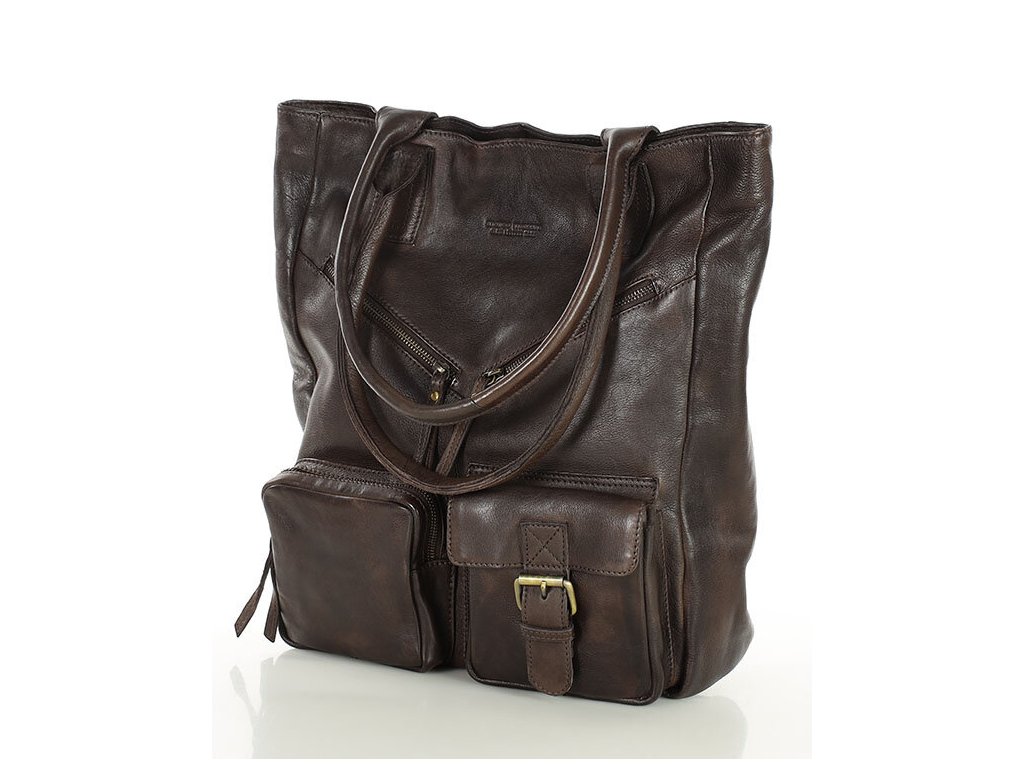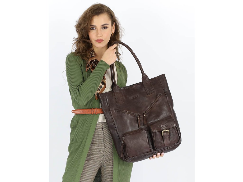 Taška z prírodnej kože z kolekcie Marco Mazzini. Nákupná taška s praktickými vreckami na prednej strane modelu.