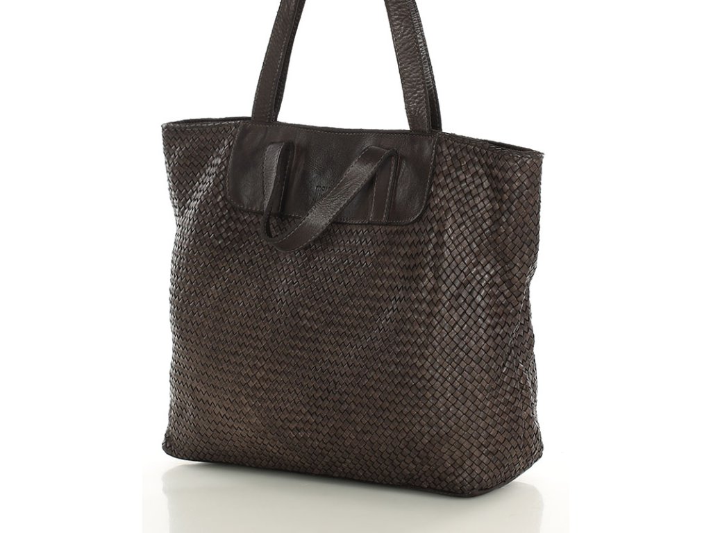 MARCO MAZZINI Tmavohnedá pletená shopper kabelka