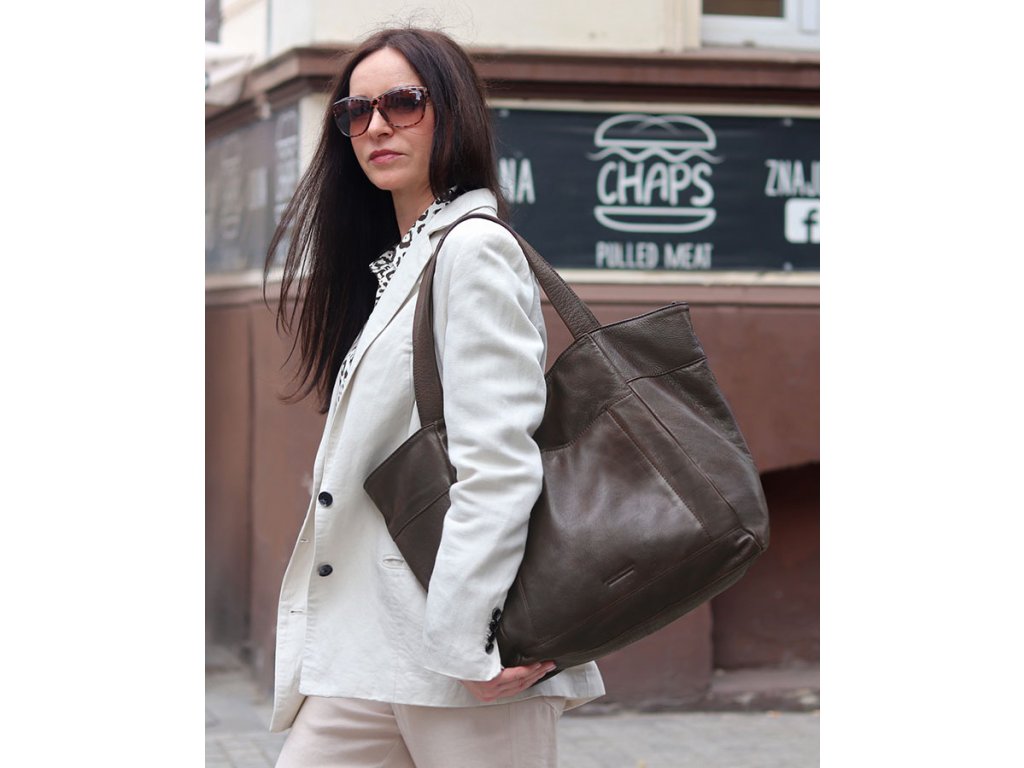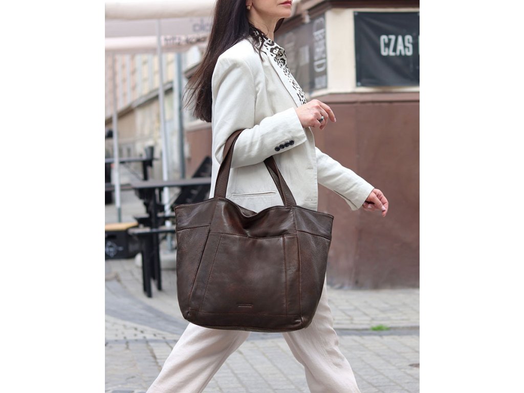 Veľká kožená shopper kabelka s vreckom – praktická a štýlová