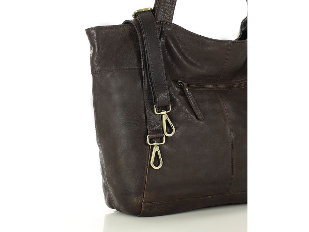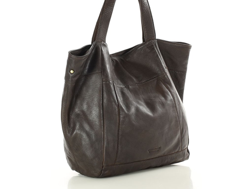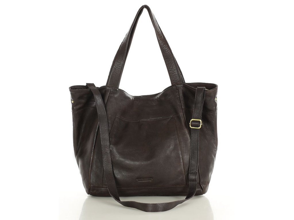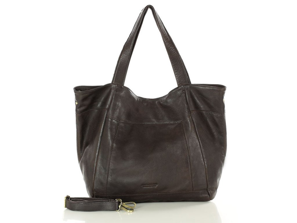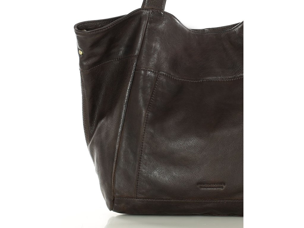 MARCO MAZZINI Tmavohnedá veľká kožená shopper taška s vreckom