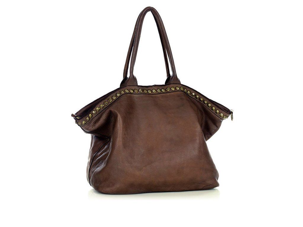 MARCO MAZZINI Tmavohnedá veľká kožená shopper taška