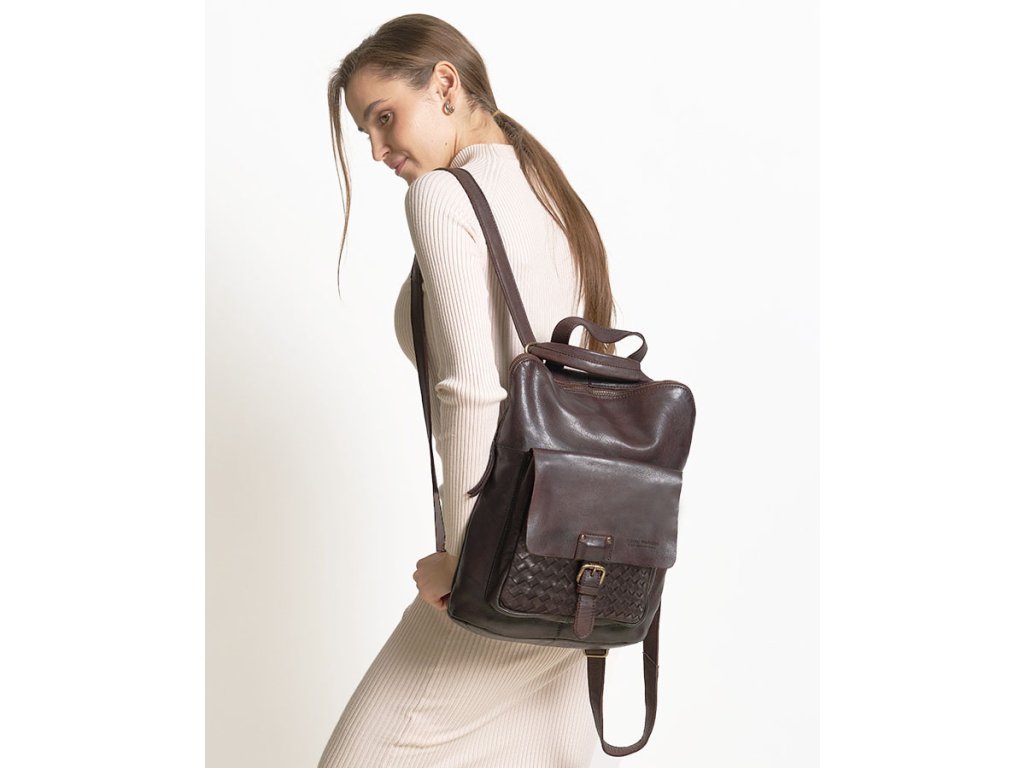 Vyrobený z prírodnej hovädzej kože, ktorá je mäkká a príjemná na dotyk. Ruksak má priestrannú hlavnú priehradku na zips a vnútorné vrecká vrátane jedného so zipsom. Vpredu nájdeš väčšie vrecko s magnetickým zapínaním a ozdobnou prackou.