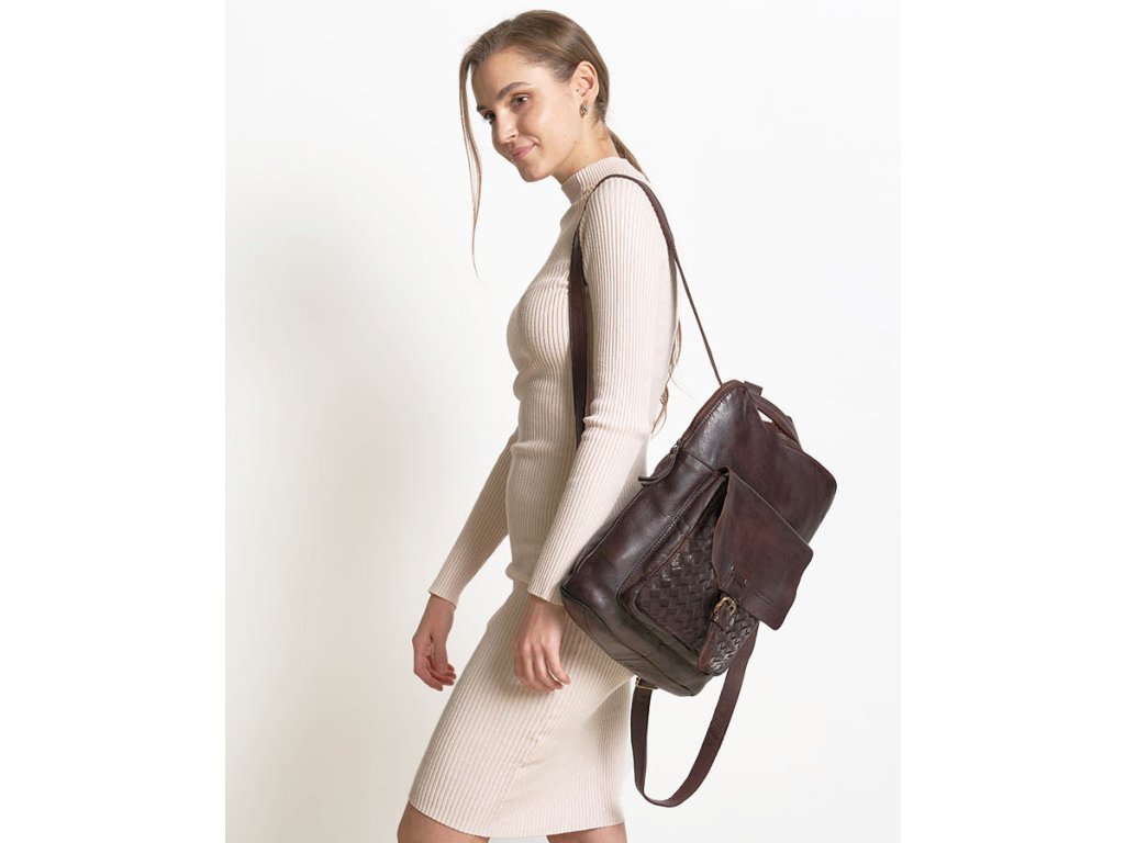 Ručne vyrábaný pletený batoh z prírodnej kože – vintage kolekcia